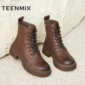 天美意复古英伦风厚底加绒马丁靴女鞋子冬新款休闲短靴皮靴时装靴