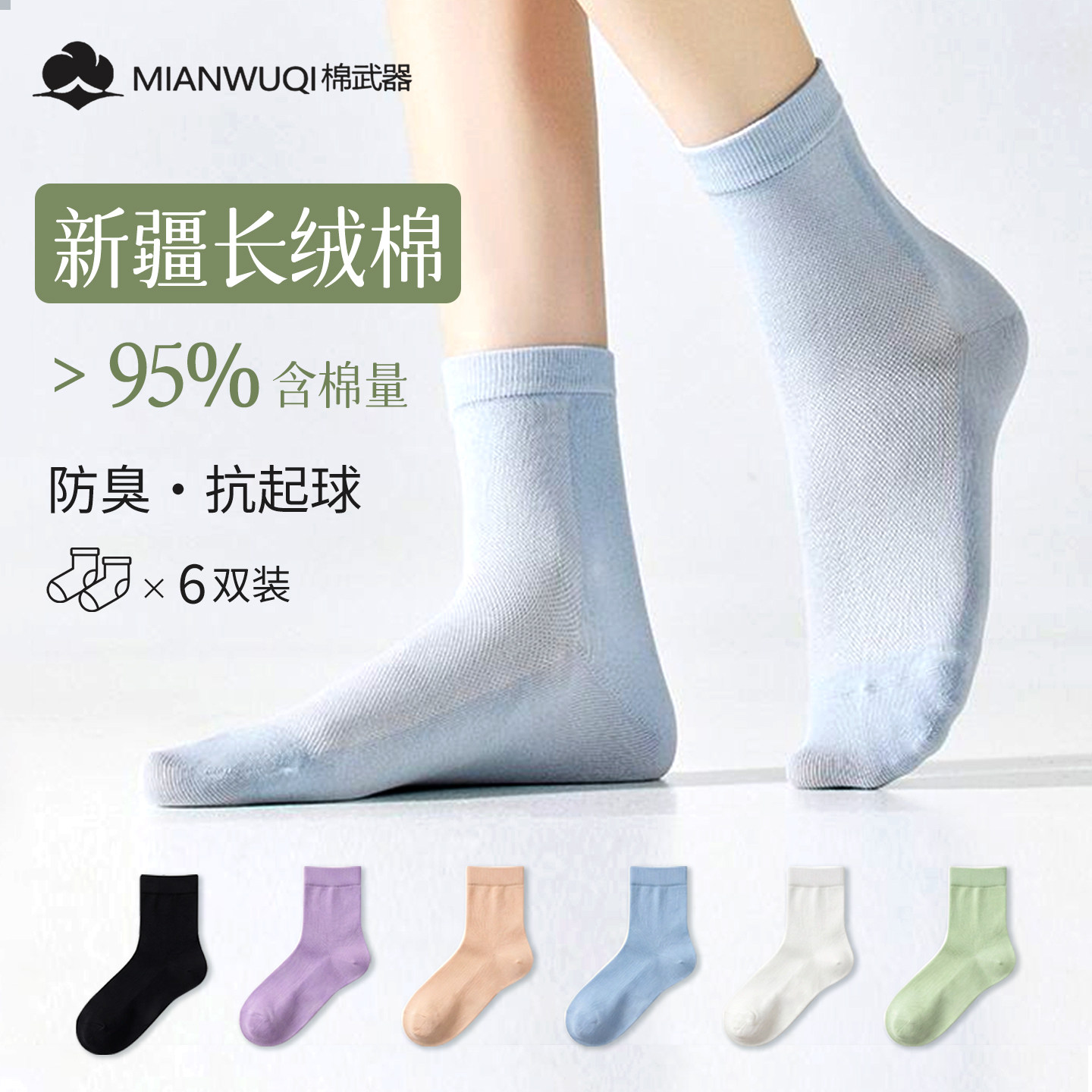 棉武器女款艾草香薰防臭7A抑菌棉袜礼盒装中筒5双高颜值吸汗透气
