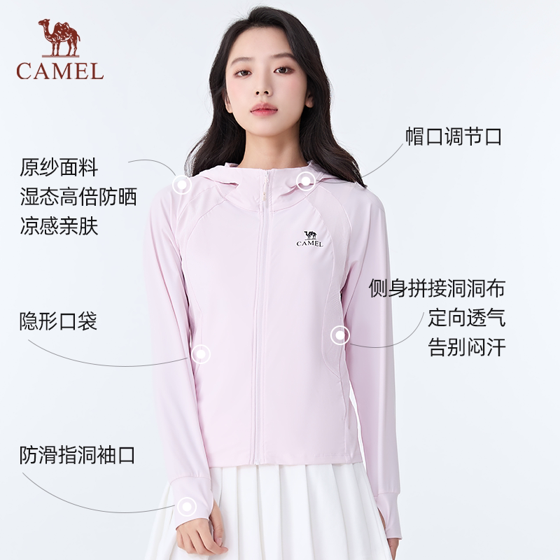 【冰萃冷白皮】Camel骆驼UPF2000+防晒衣女新款修身运动防晒服夏