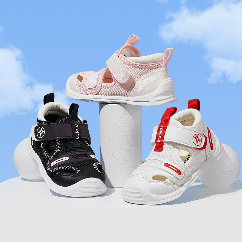 卡特兔宝宝学步鞋夏季新品幼儿园小白鞋网面儿童凉鞋包头鞋