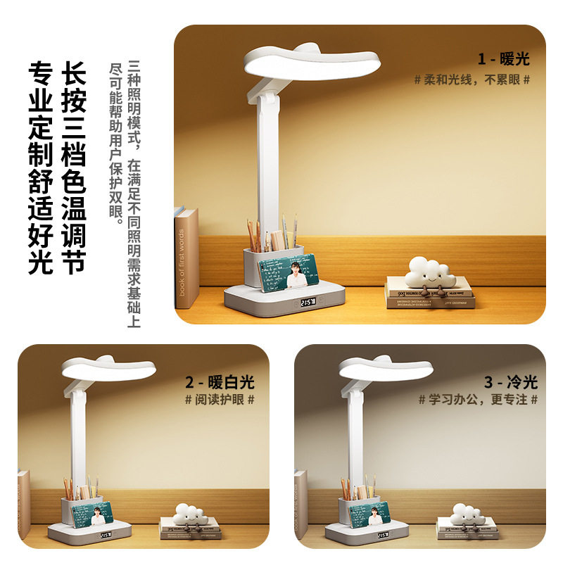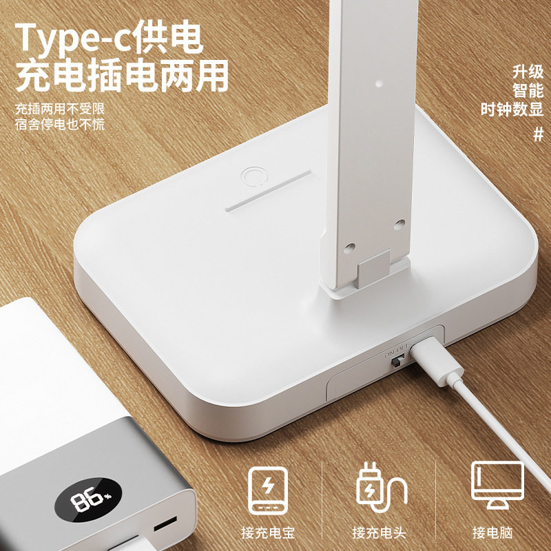 旋转折叠带笔筒支架双头led护眼台灯学习阅读宿舍床头充电显时间