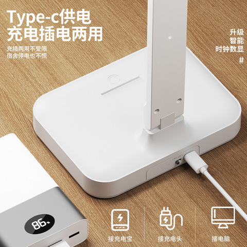 旋转折叠设计,带笔筒支架,双头LED护眼台灯,充电显时间,宿舍床头学习阅读神器,护眼更贴心!