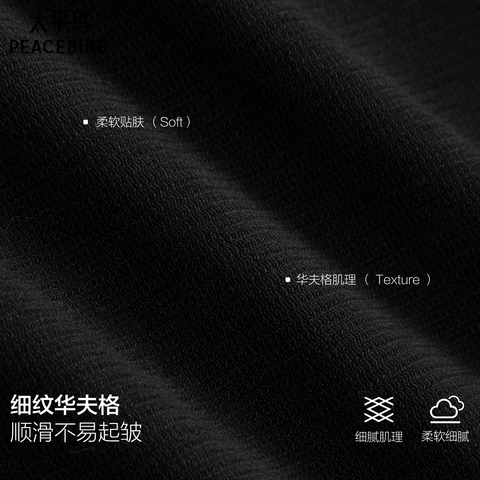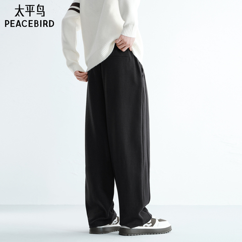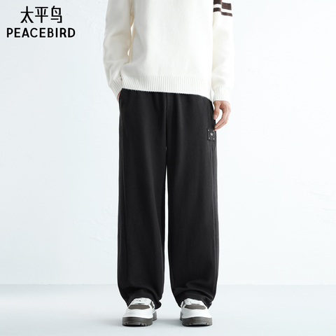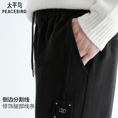 太平鸟男装华夫格卫裤阔腿质感直筒休闲裤黑色宽松运动裤男生裤潮