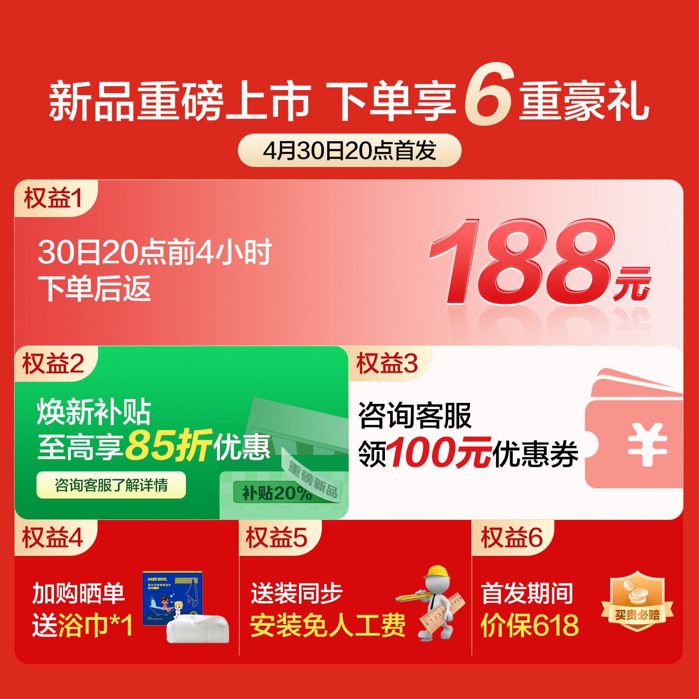 海尔出品统帅电热水器小音浪F7K 【售价】:¥1714.15 【券后】:¥1614.15 【优惠券】:¥100 推荐理由:【新品首...发:30日20点-5月1日24点下单前4小时返188元红包,加购晒...单赠海尔浴巾,焕新补贴85折,价保618】海尔统帅AI电热水器F7K,变频扁桶设计,静音节能,智能恒温,洗澡更舒适!淘金币可抵扣,性价比超高,家用首.选! 👉复制这条信息59( HU287 iFxC5jUYJjo) 打开【手机淘宝APP】即可领券购买:/