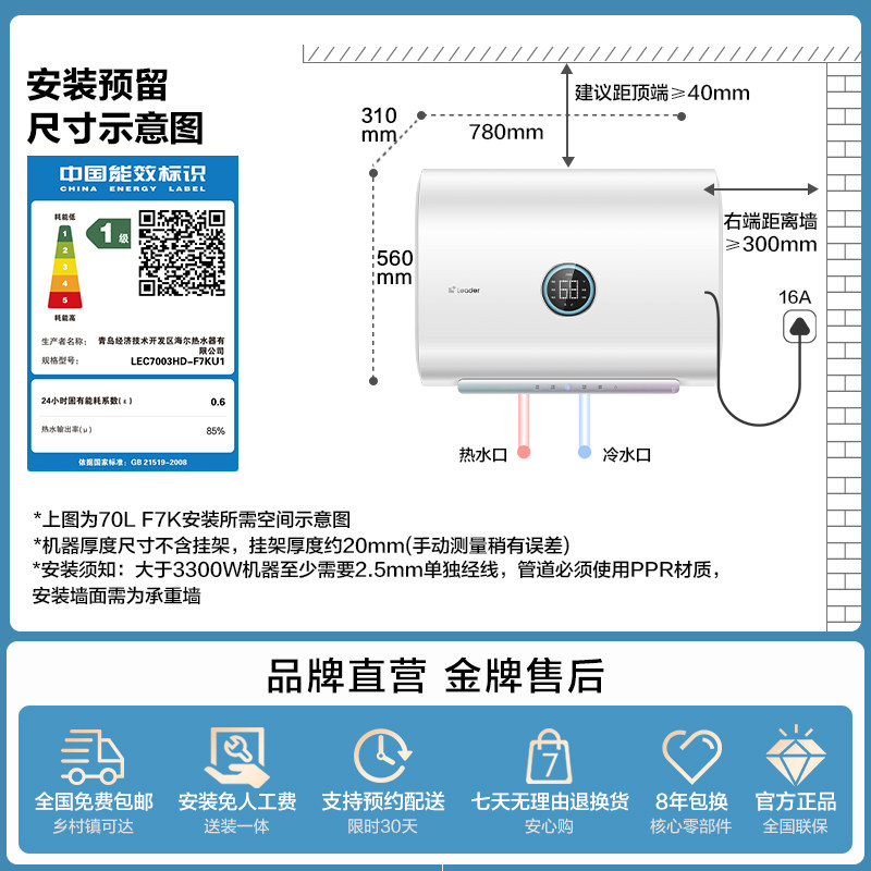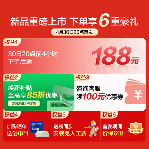 【新品首...发:30日20点-5月1日24点下单前4小时返188元红包,加购晒...单赠海尔浴巾,焕新补贴85折,价保618】海尔统帅AI电热水器F7K,变频扁桶设计,静音节能,智能恒温,洗澡更舒适!淘金币可抵扣,性价比超高,家用首.选!