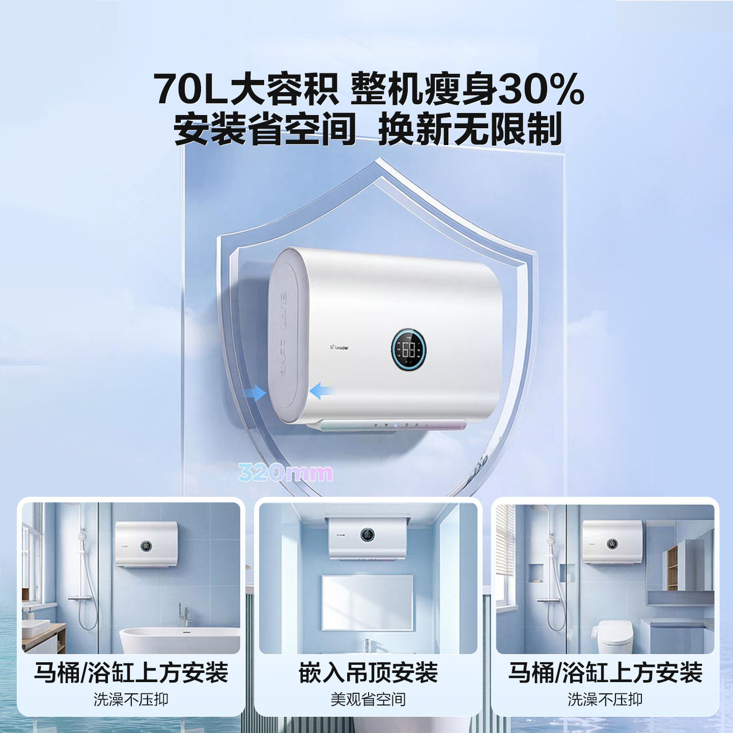 59( HU287 iFxC5jUYJjo) https://m.tb.cn/h.it6kC1r 【重磅新品】海尔出品统帅懒人电热水器70L家用洗澡扁桶小音浪F7K