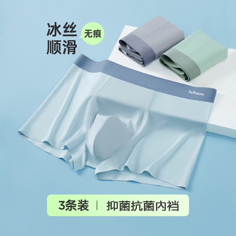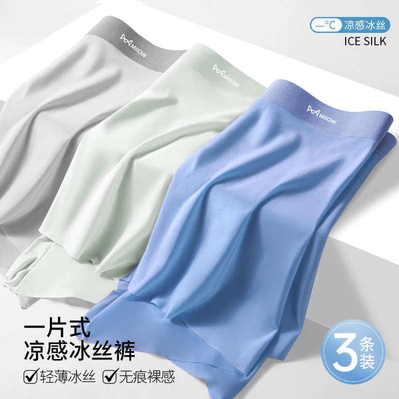 【一步礼金19.9左右】/猫人男士冰丝内裤无痕裤,衩网孔透气空调裤夏季冰凉内裤速干