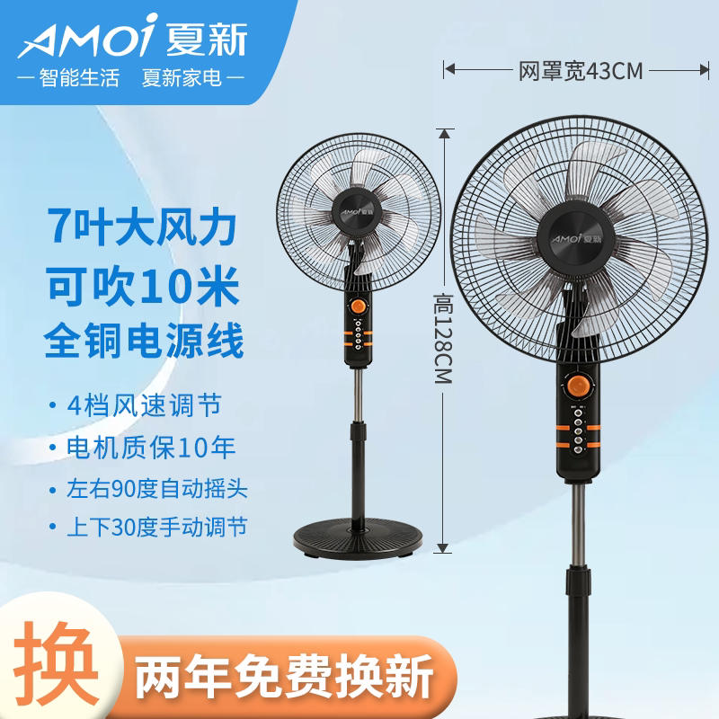 Amoi/夏新落地扇客厅卧室厨房摇头立式风扇家用遥控大风力电扇