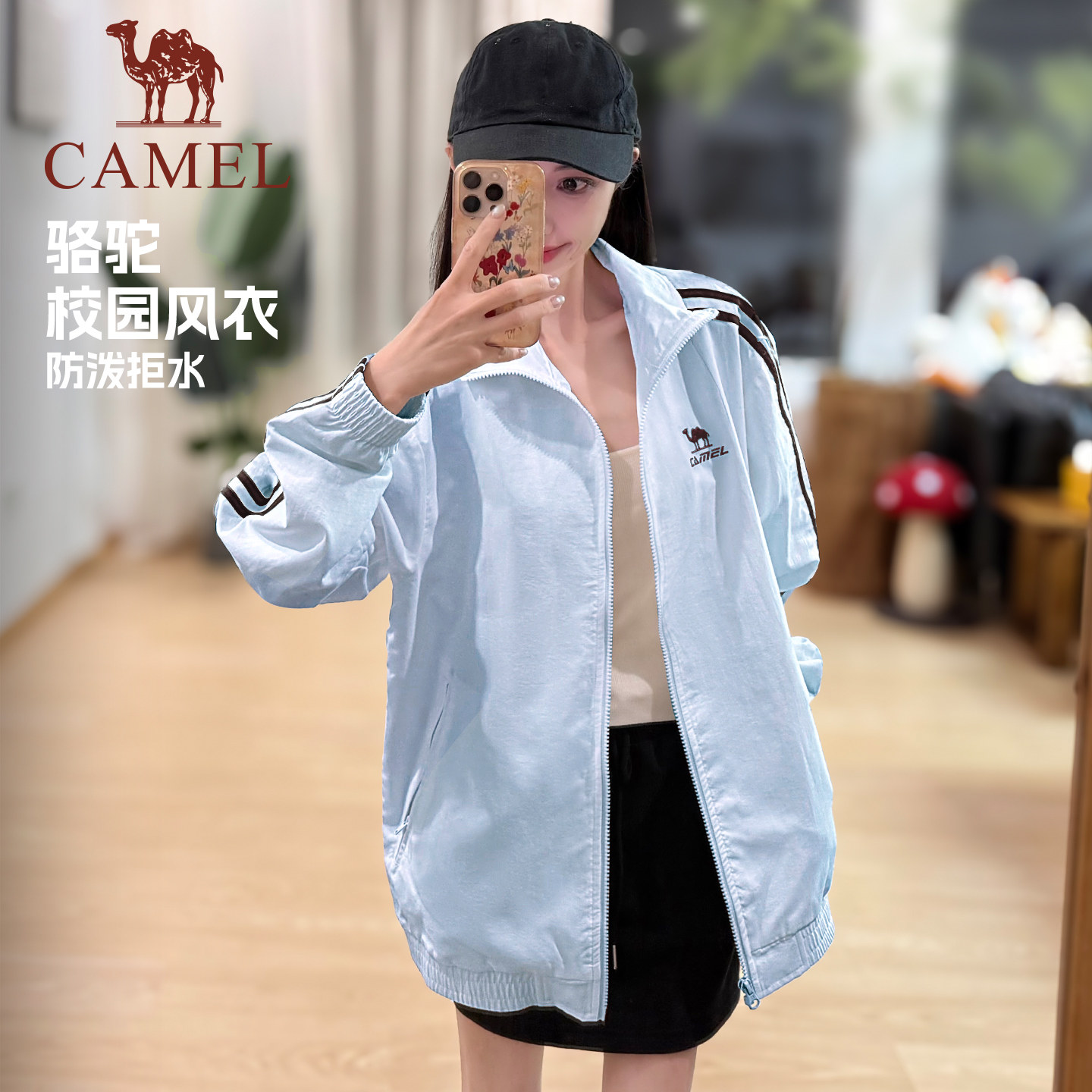 骆驼校园风衣立领外套春夏季男女同款防泼水休闲黑白夹克外套
