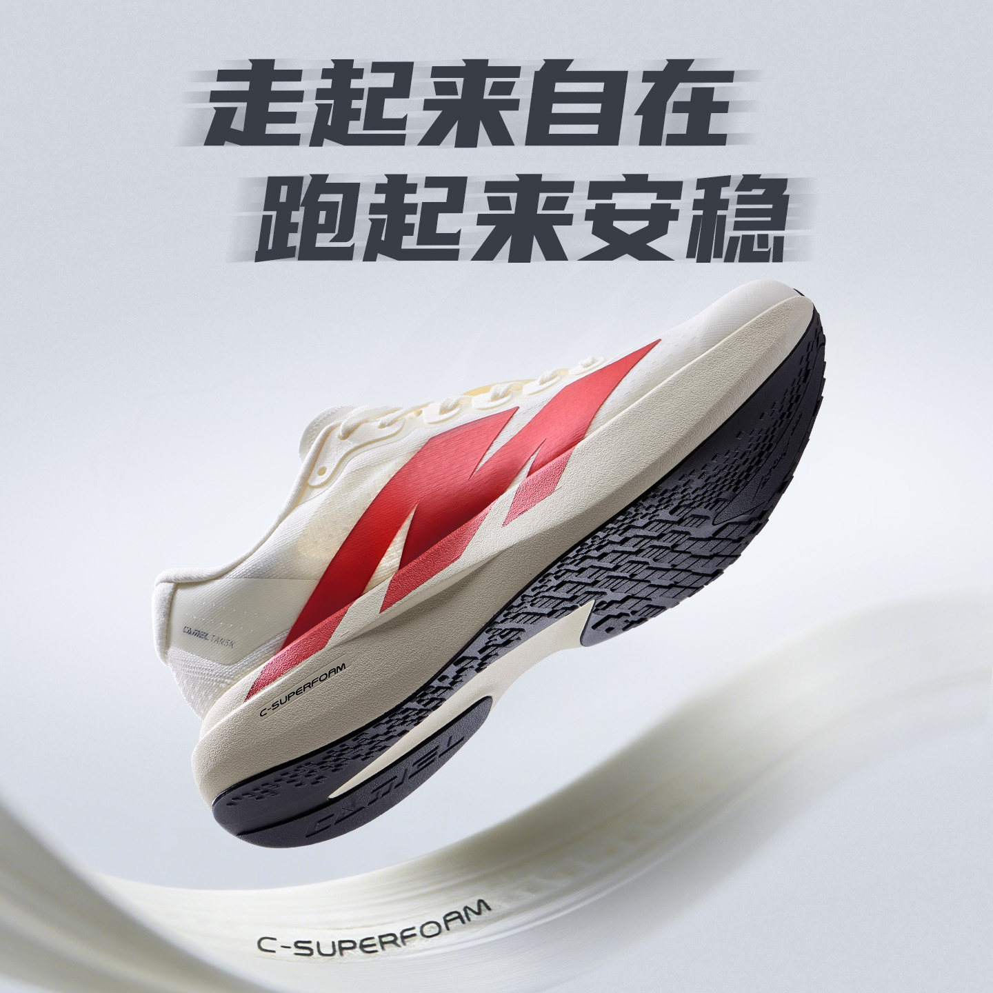 骆驼碳5K男款慢跑鞋,厚底碳板设计,缓震透气,轻量舒适,适合日常运动与休闲。网面透气不闷脚,运动更轻松!