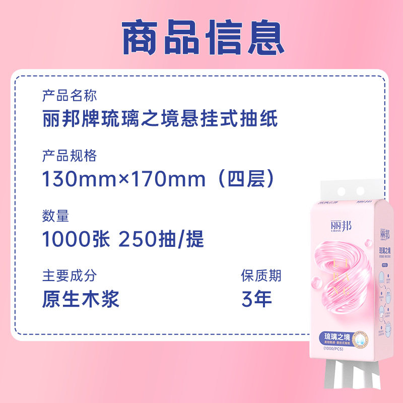 丽邦悬挂式底部抽纸12提大包整箱家用实惠装餐巾卫生纸抽纸巾