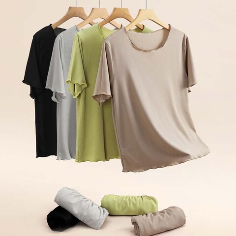 08( HU293 lXrZ58JYdwU) https://m.tb.cn/h.itExvTJ 宜而爽女冰丝睡衣套装 短袖T恤背心短裤居家服宽松凉感外穿家居服
