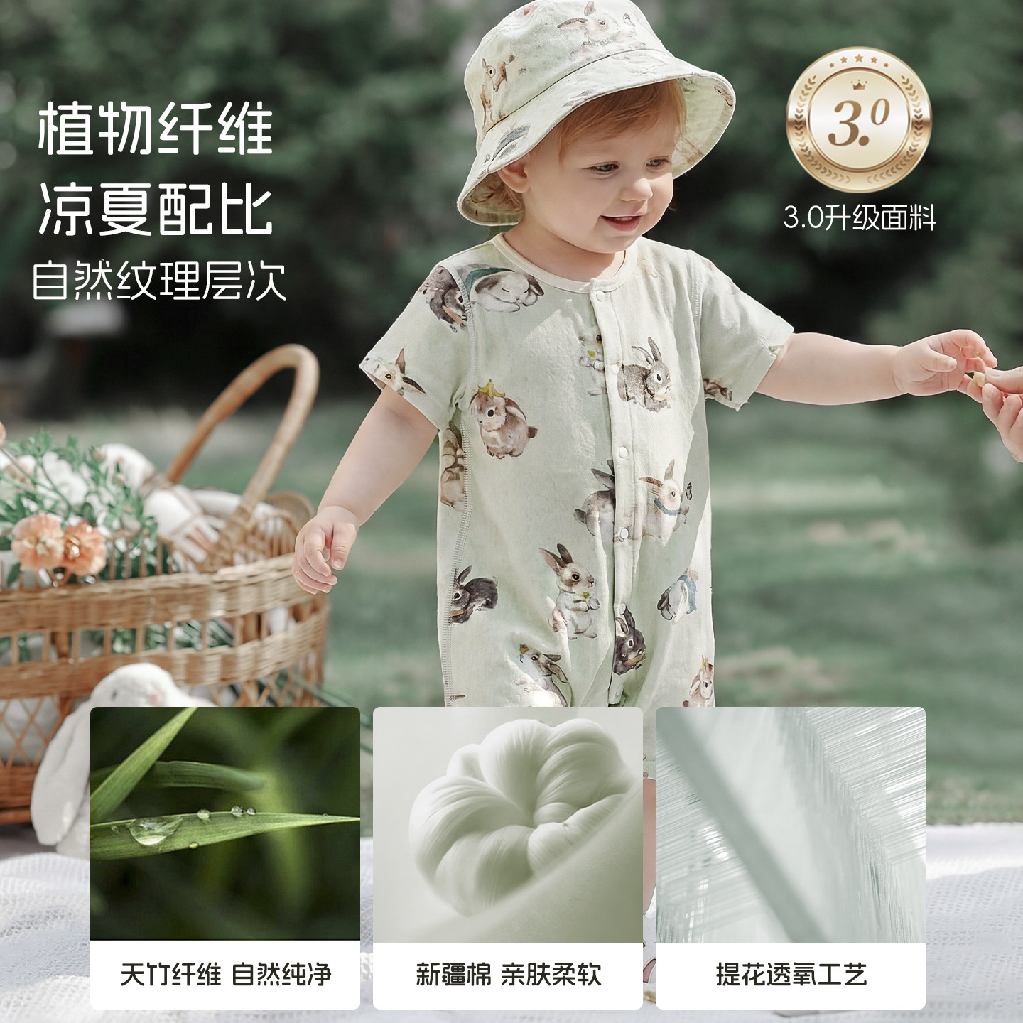 87( CZ009 vsiI5jhJU2o) https://m.tb.cn/h.iHYiiWf {竹棉网眼·凉感小提花}婴儿短袖连体衣夏季薄款哈衣男女宝宝爬服