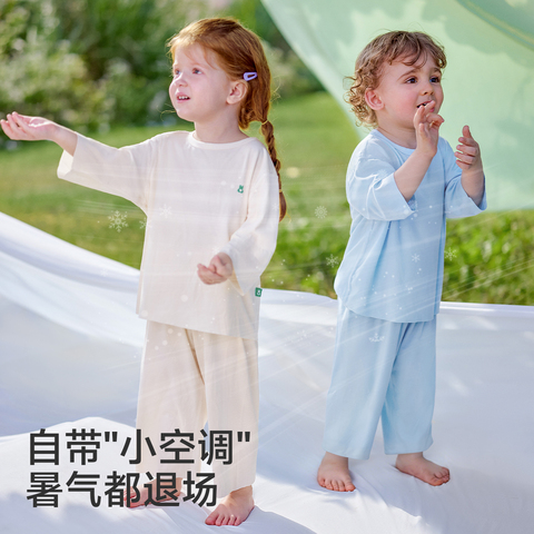 【49.9】,欧孕[植纤纤]儿童睡衣套装夏季新款薄款男孩女童优可丝宝宝家居服