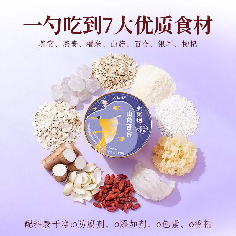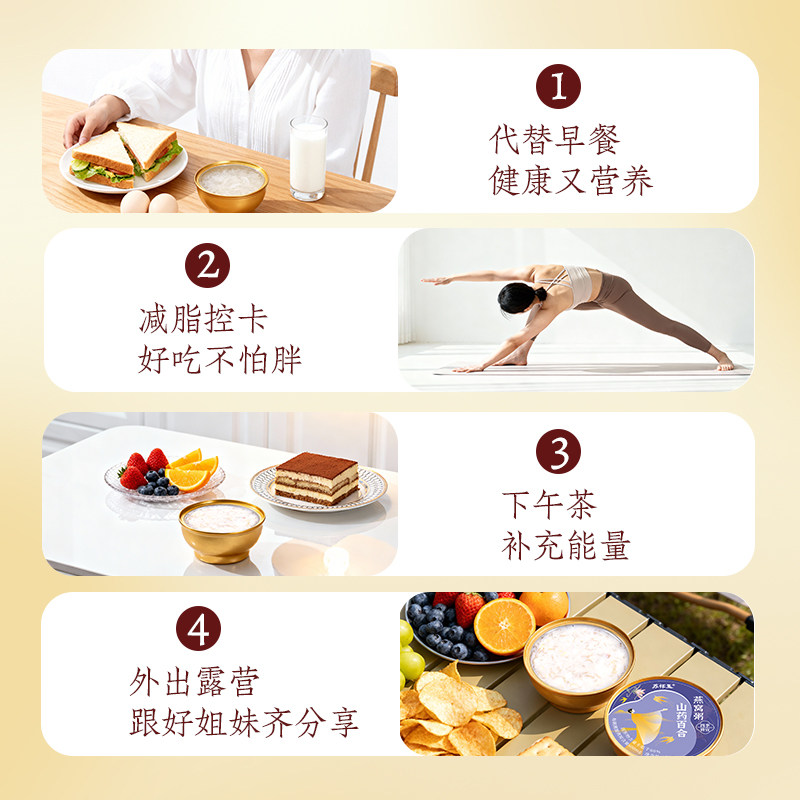 (淘金币+礼金)到手更低~【即食免煮!营养燕窝粥,早餐代餐】山药百合厚椰乳口味,0添加防腐剂,减脂期也能放心吃!拍2件更优惠,健康美味轻松享!