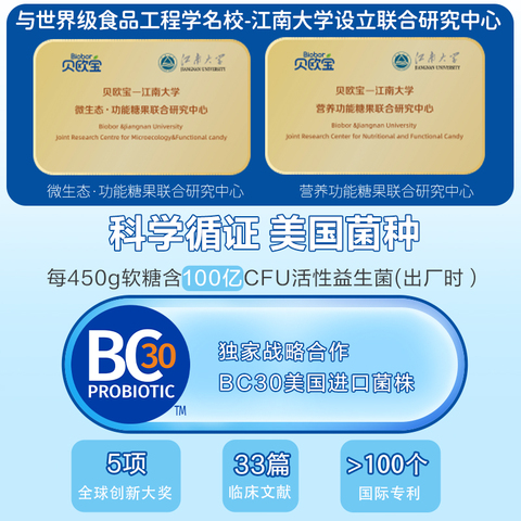 48( CZ356 Cl885j1ROgV) https://m.tb.cn/h.isGyJnC 贝欧宝活性益生菌软糖宝宝儿童营养糖果0糖零食美国进口BC30菌株