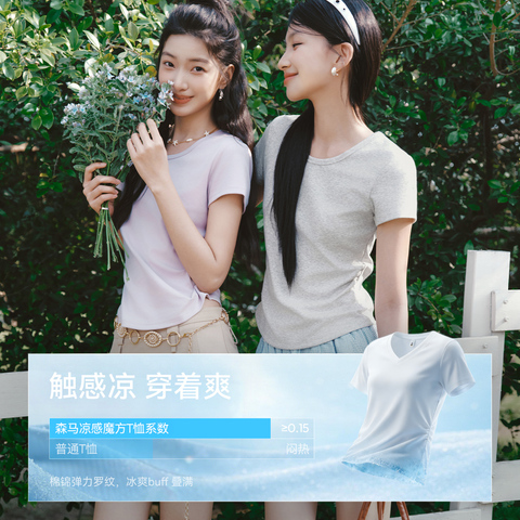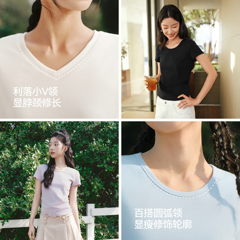 89( HU071 9QVB58uaWRT) https://m.tb.cn/h.islOawZ 陈都灵|凉感T森马短袖T恤女夏圆领收腰修身2026新款内搭上衣白色