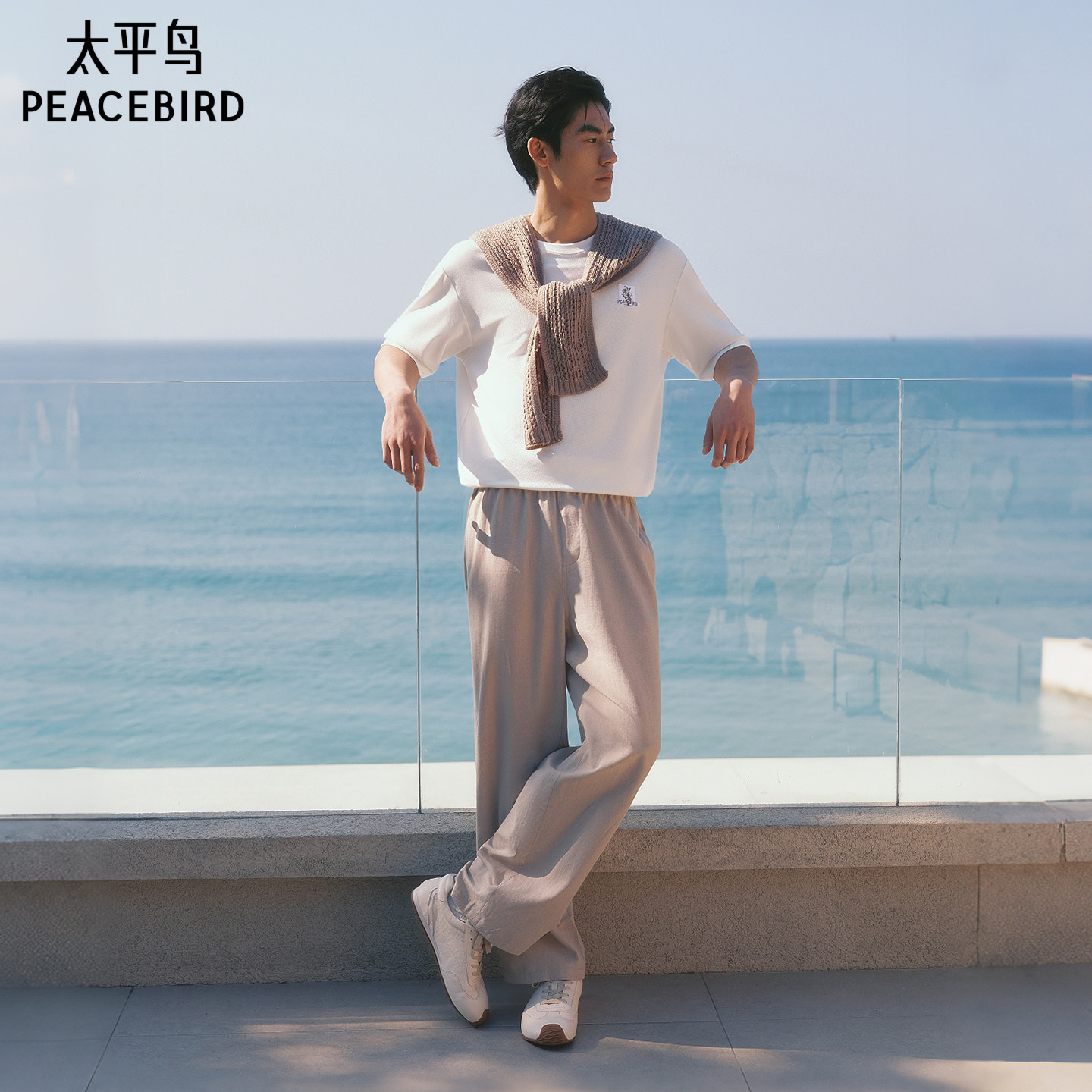 【肌理感】太平鸟男装纯色logo刺绣T恤2026夏季新款圆领通勤短袖
