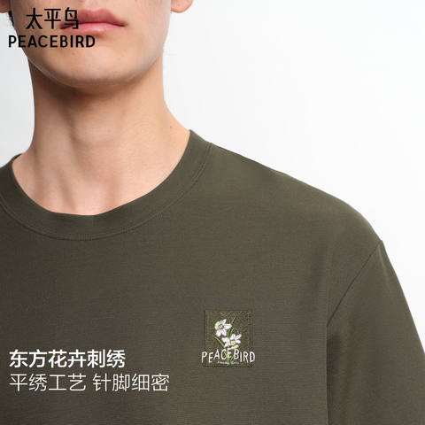 87( CZ001 y8f958CDboS) https://m.tb.cn/h.iHgYjOp 【肌理感】太平鸟男装纯色logo刺绣T恤2026夏季新款圆领通勤短袖
