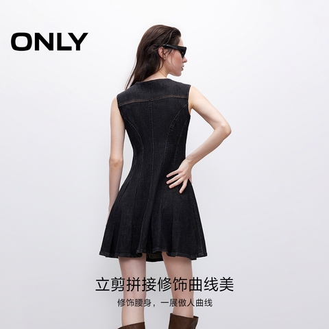 【ONLY奥莱】春季莱卡面料时尚辣妹百搭显瘦圆领短裙牛仔连衣裙女