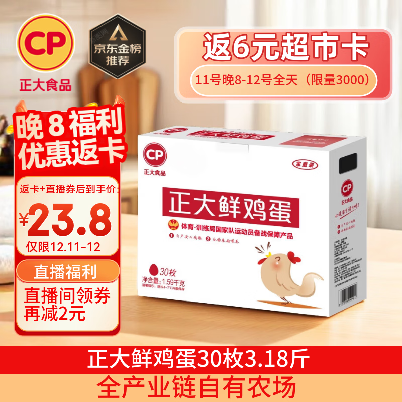 CP正大鲜鸡蛋 30枚 3.18斤 早餐食材 优质蛋白 礼盒装
