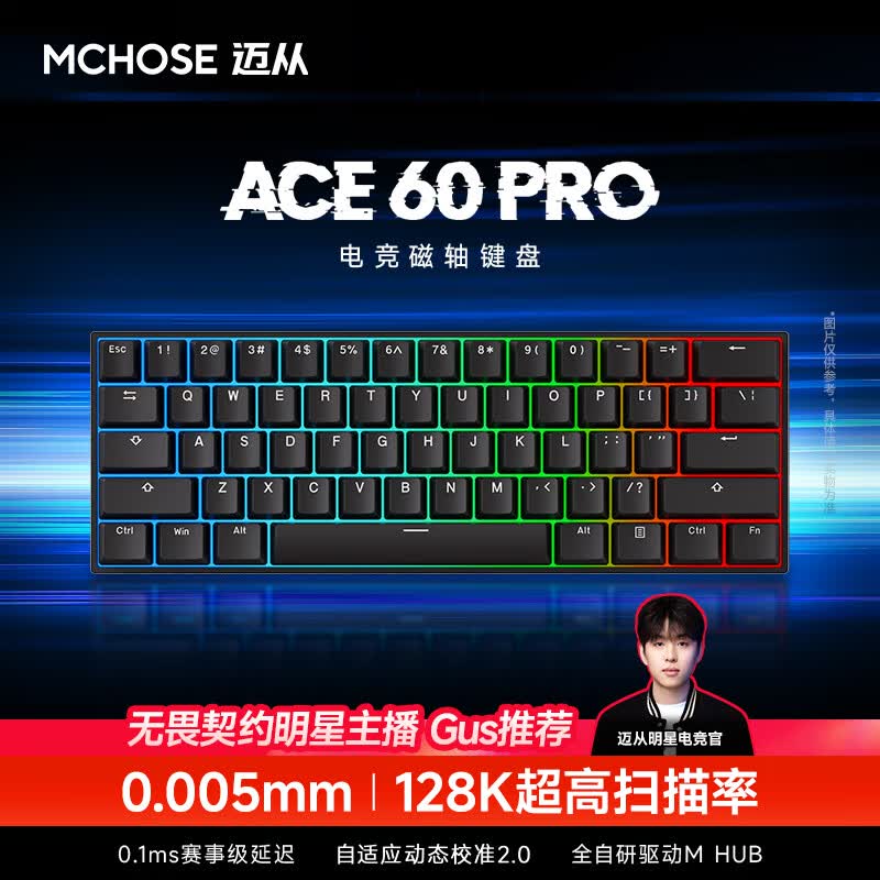 迈从(MCHOSE)Ace 68 V2磁轴键盘Gus同款RT电竞游戏低延迟60pro机械有线连接68键配列FPS双驱动无畏契约 Ace 60 Pro 蓝冰磁轴