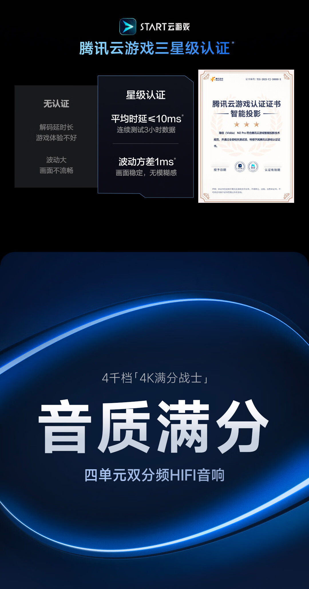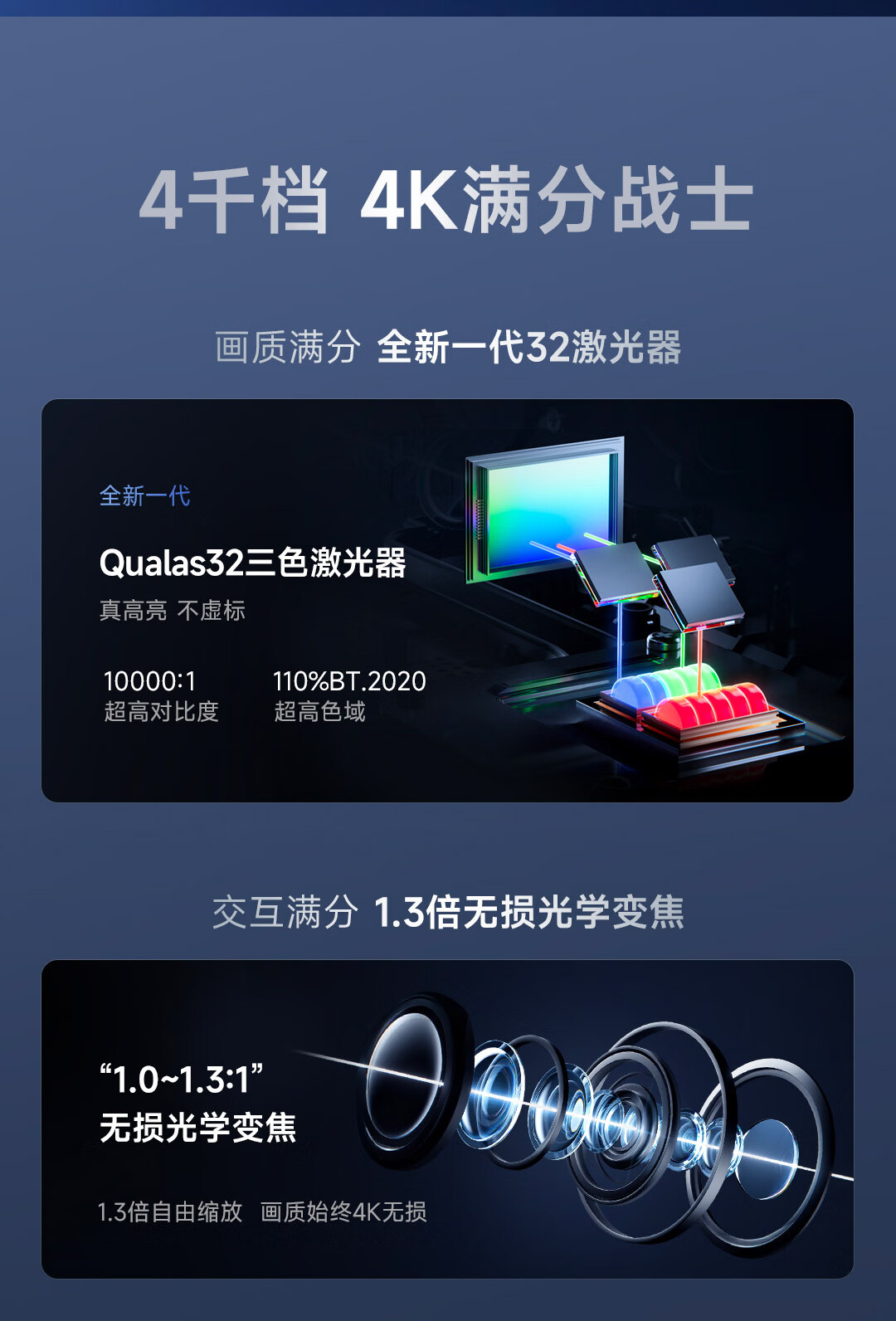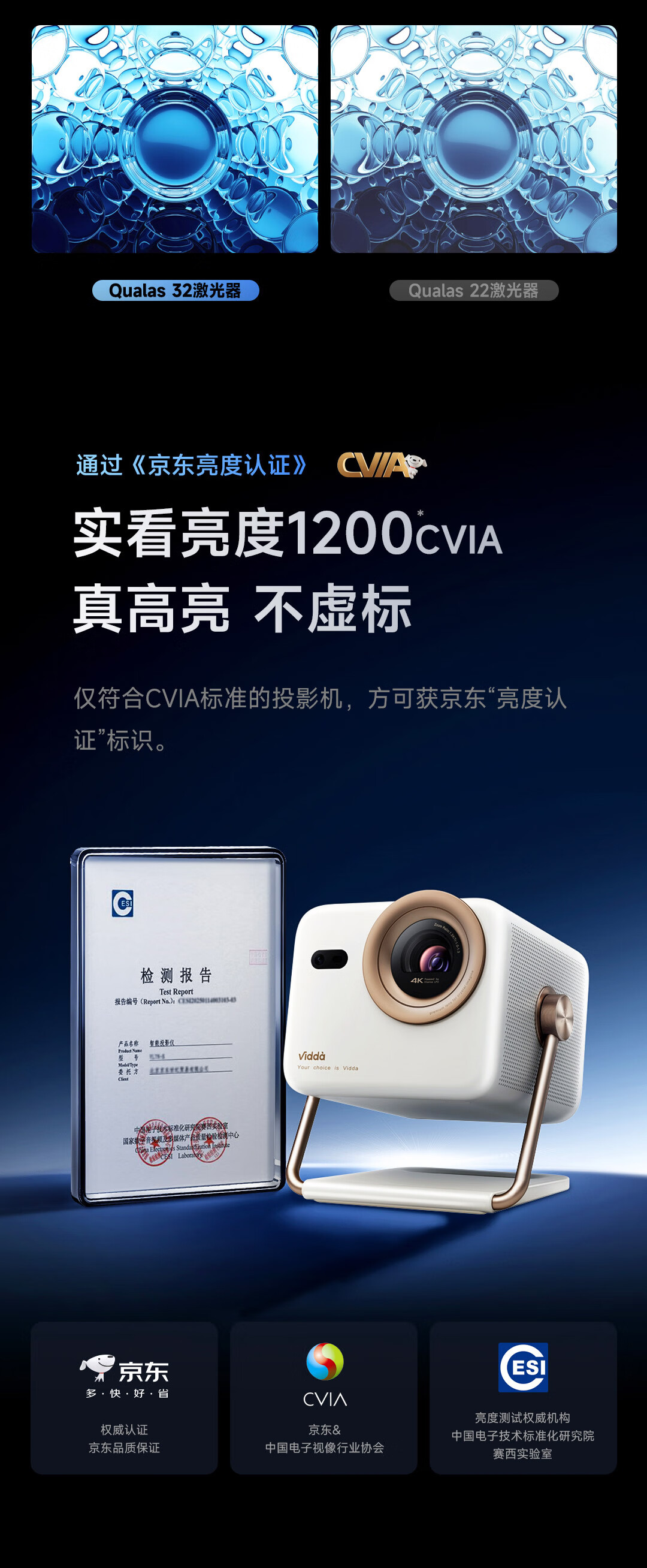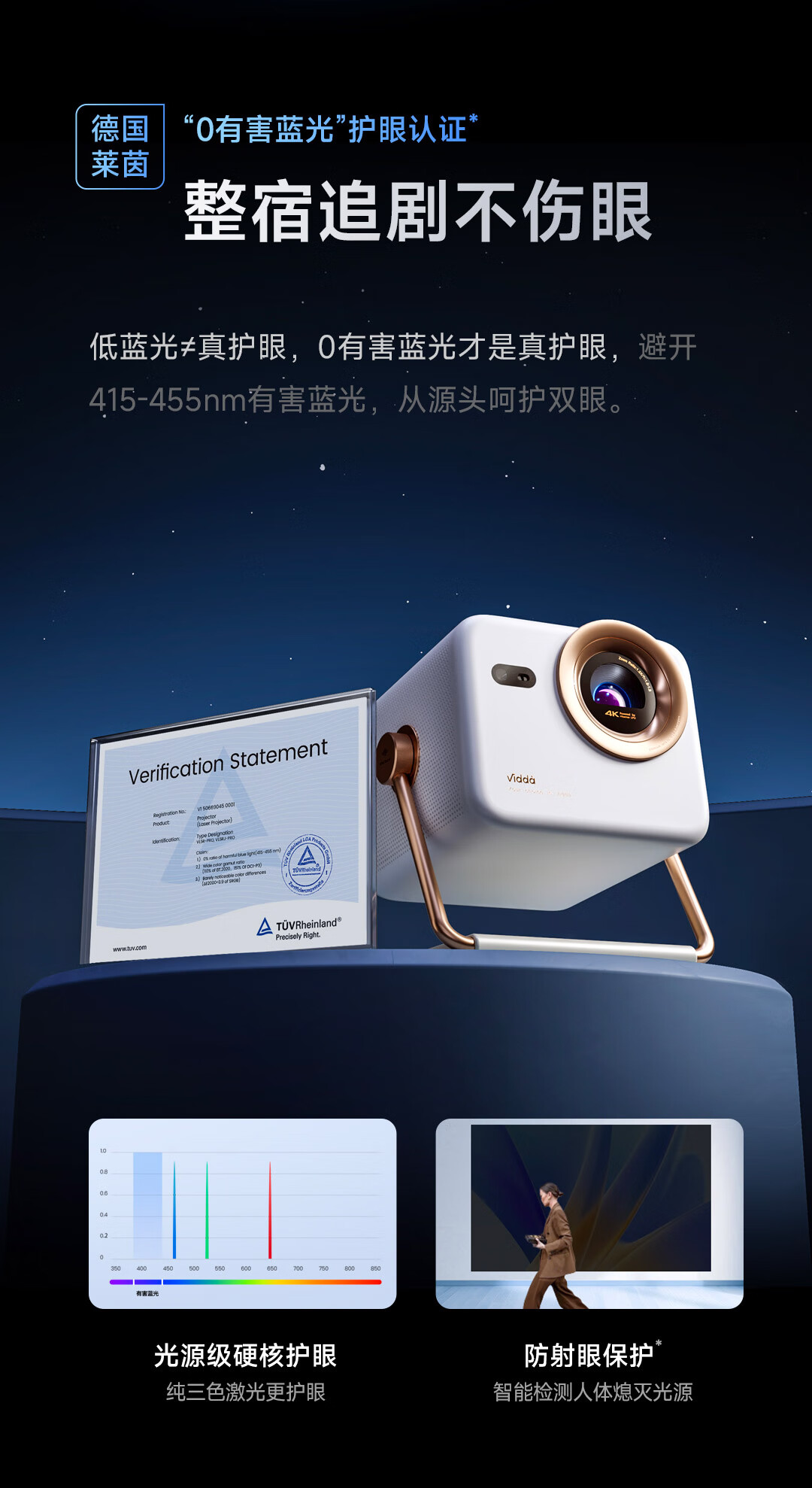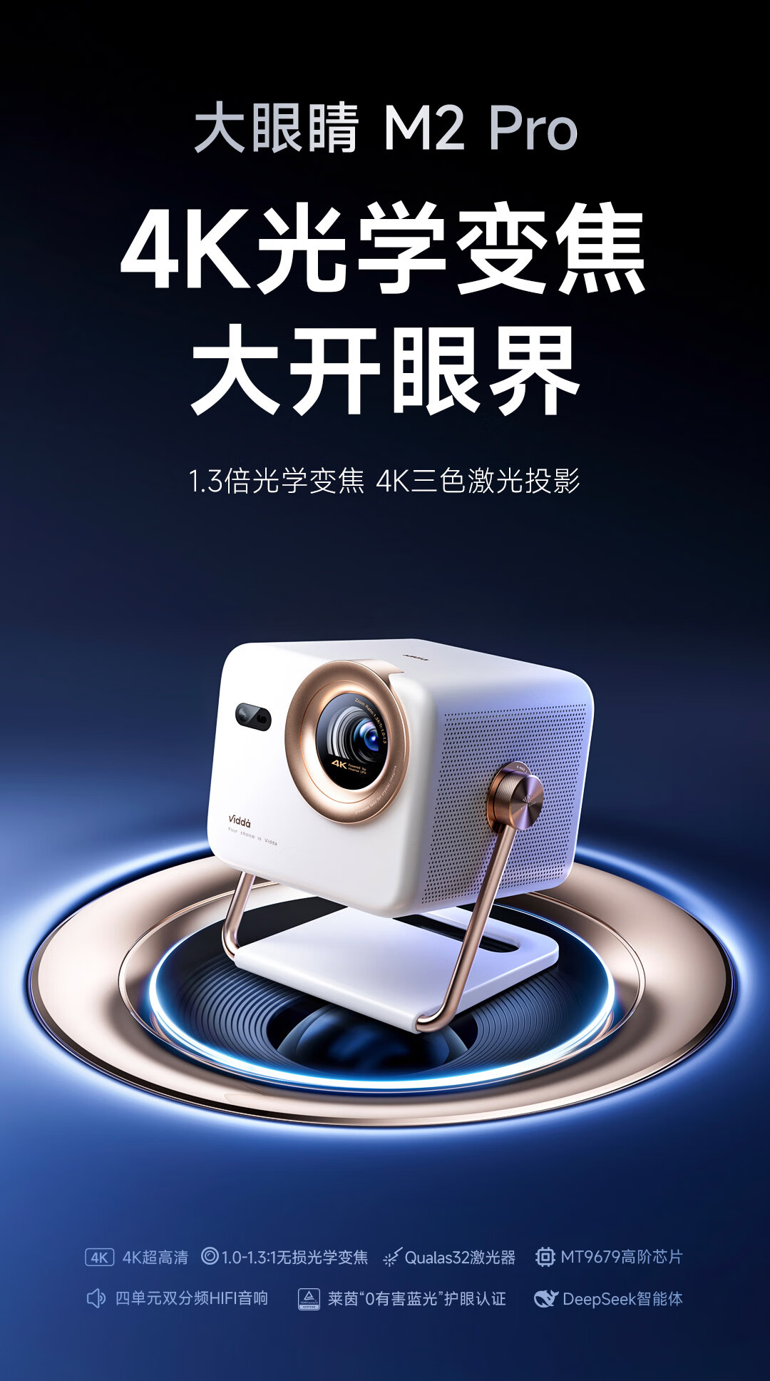 Vidda 大眼睛M2 Pro皓月白 海信4K超高清三色激光投影仪 无损光学变焦0.47DMD芯片家庭影院办公国家补贴