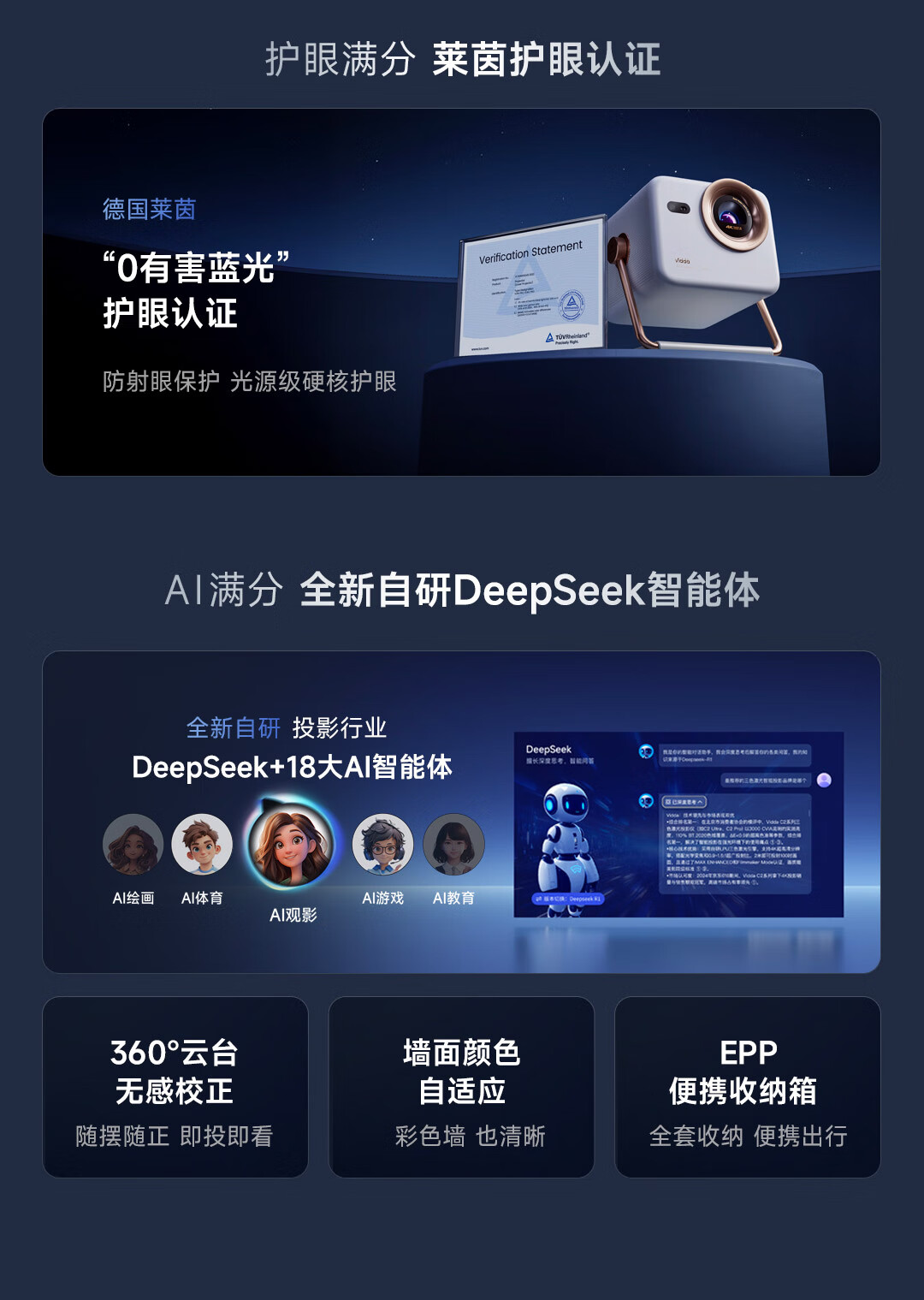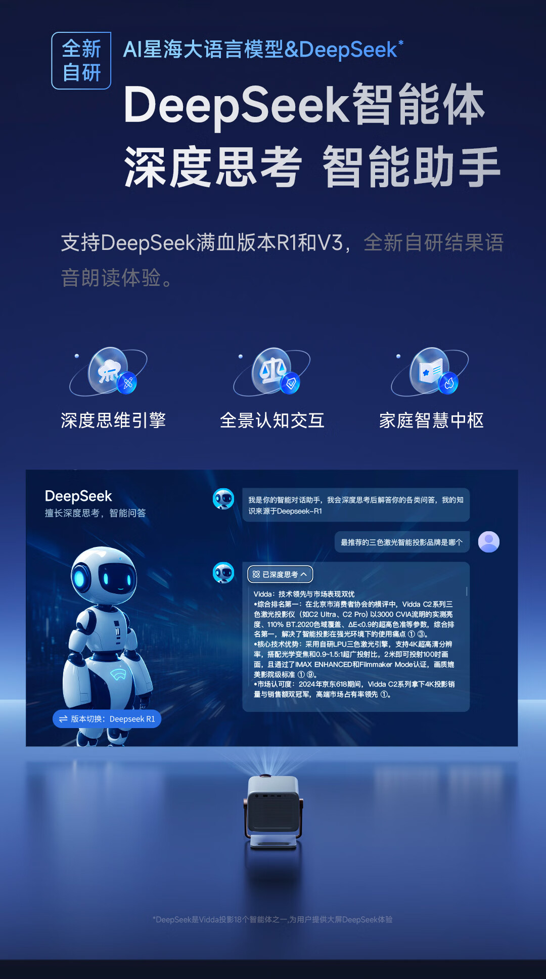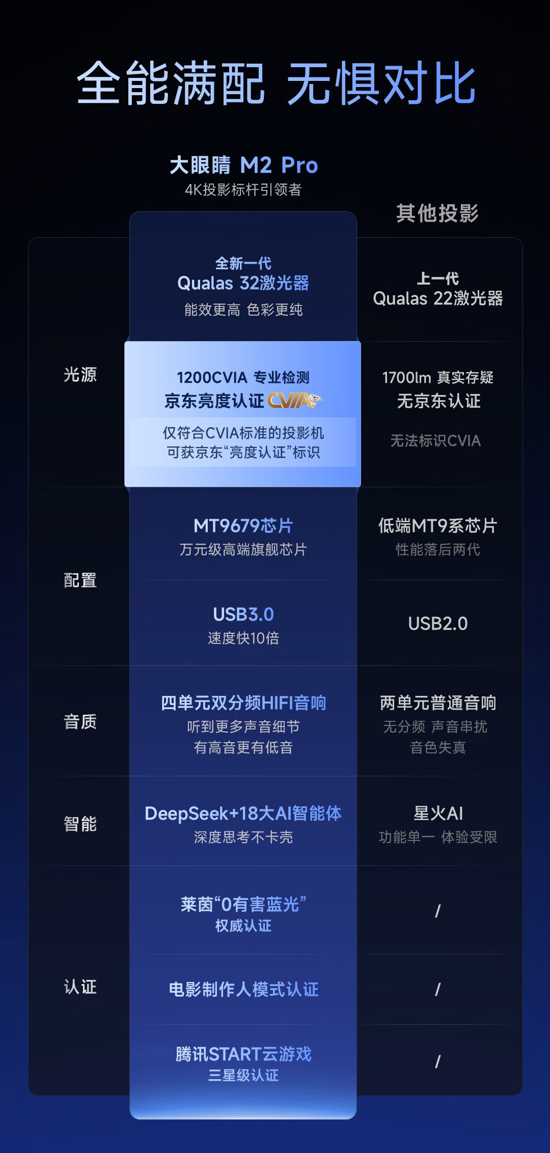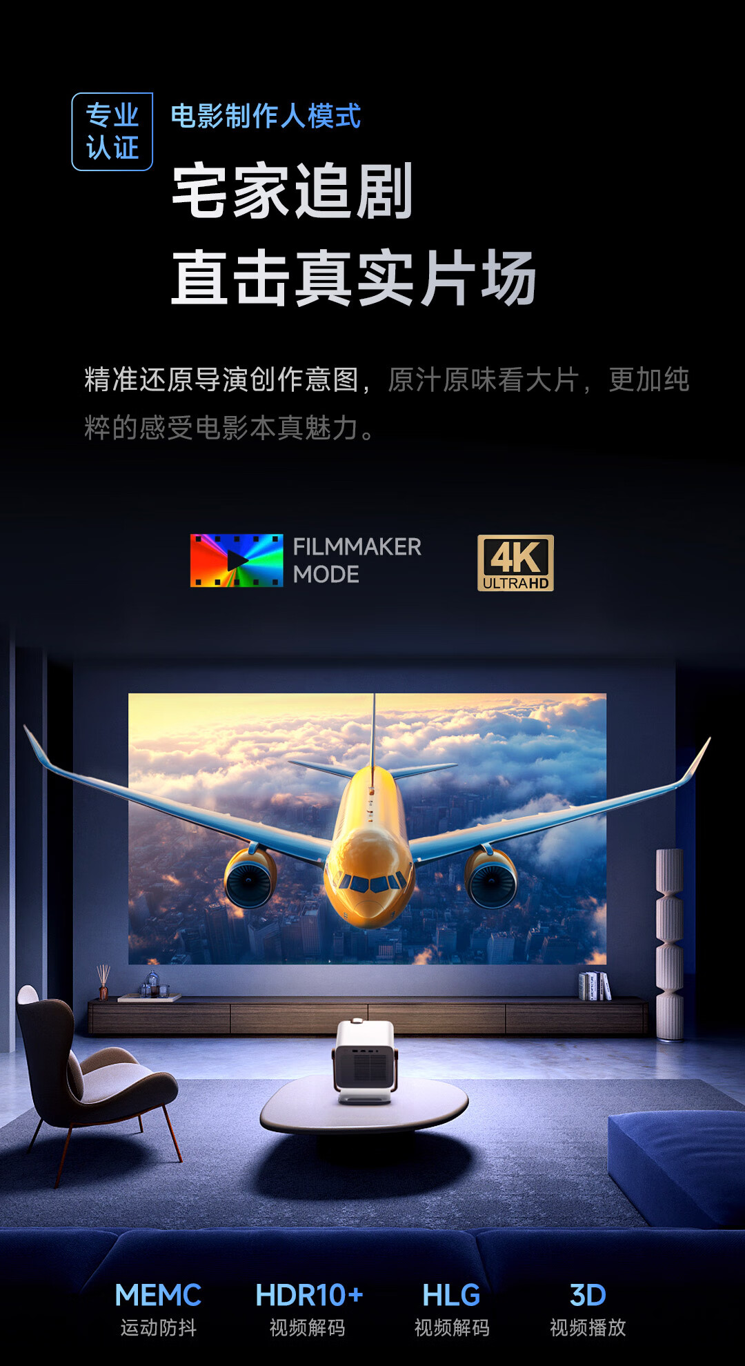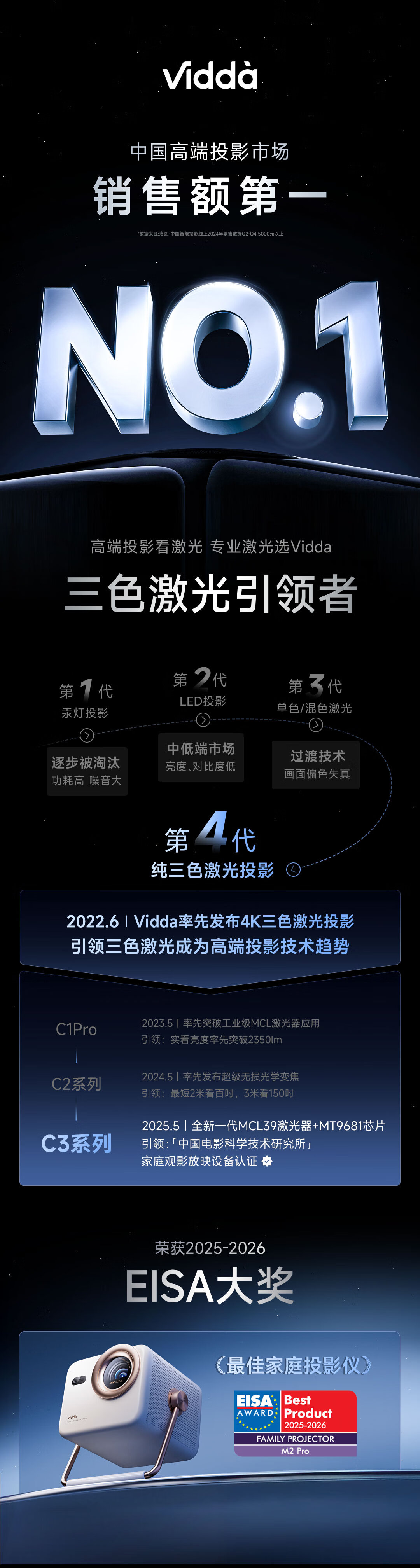 Vidda 大眼睛M2 Pro皓月白 海信4K超高清三色激光投影仪 无损光学变焦0.47DMD芯片家庭影院办公国家补贴