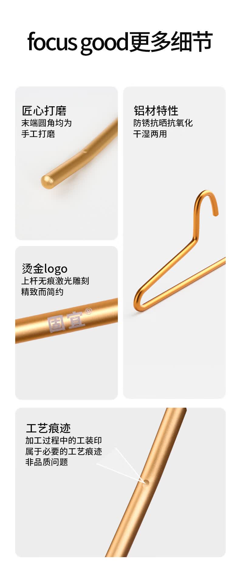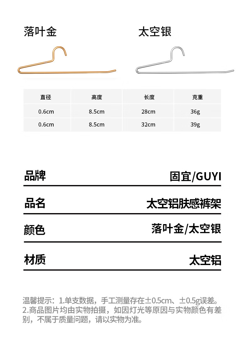 固宜太空铝裤架肤感防滑无痕短颈鹅形裤架裤子衣架家用挂裤子 反向太空银【5支】 8.5*32cm