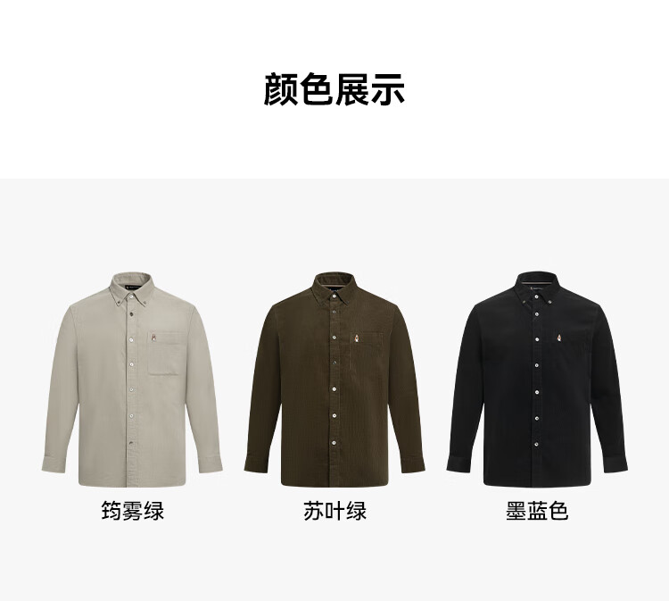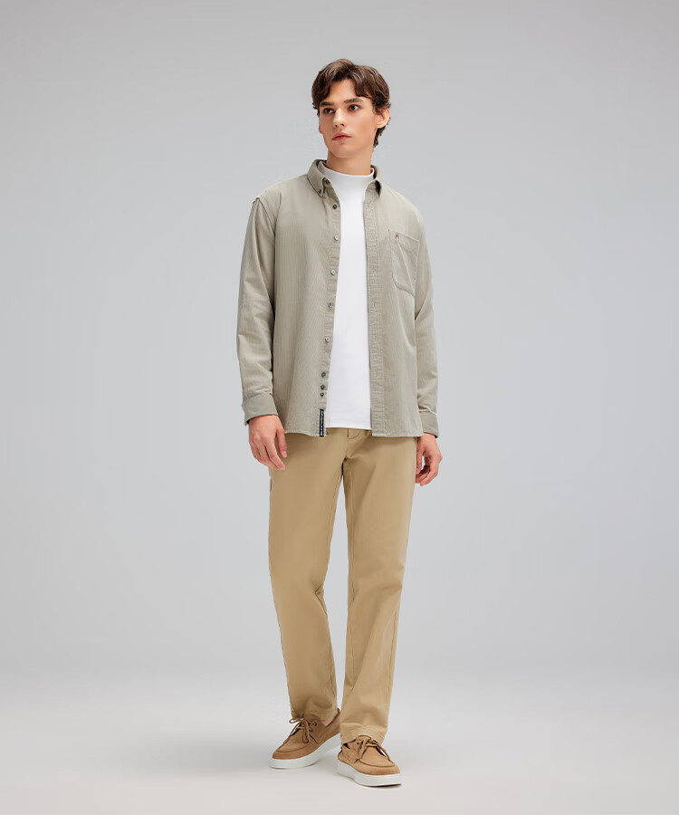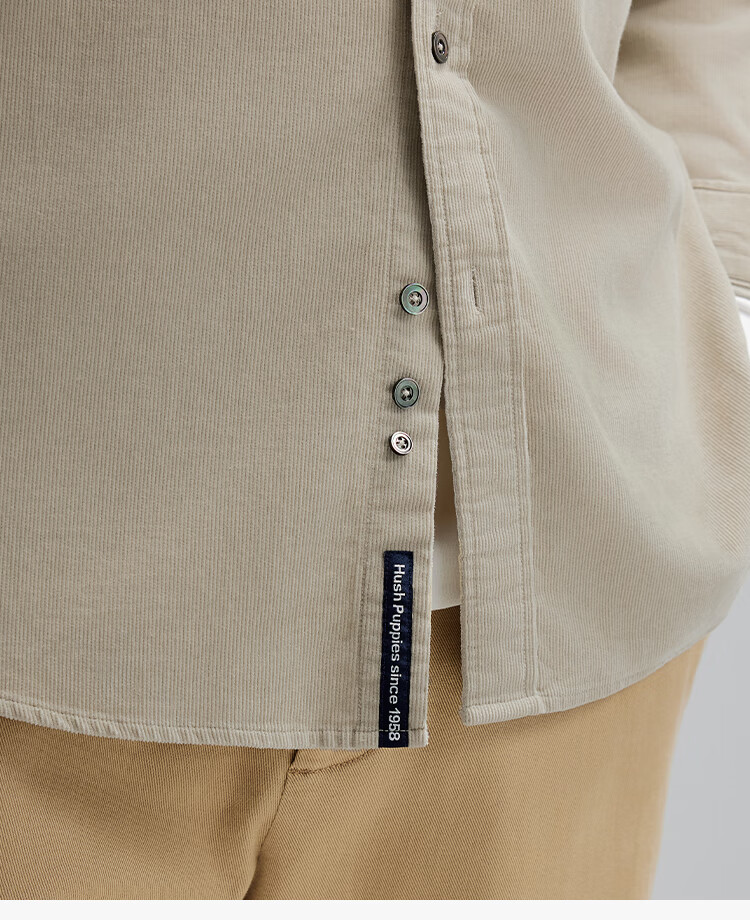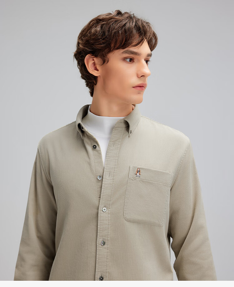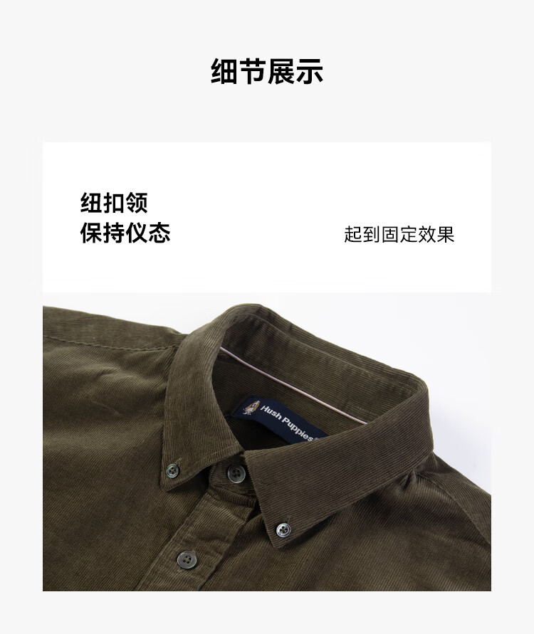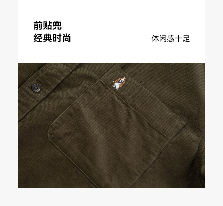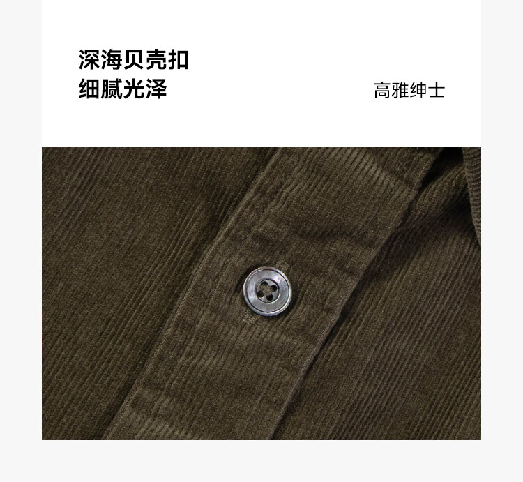暇步士(Hush Puppies)【柔软耐磨】男装秋季面料厚实复古细条灯芯绒衬衫 苏叶绿 L