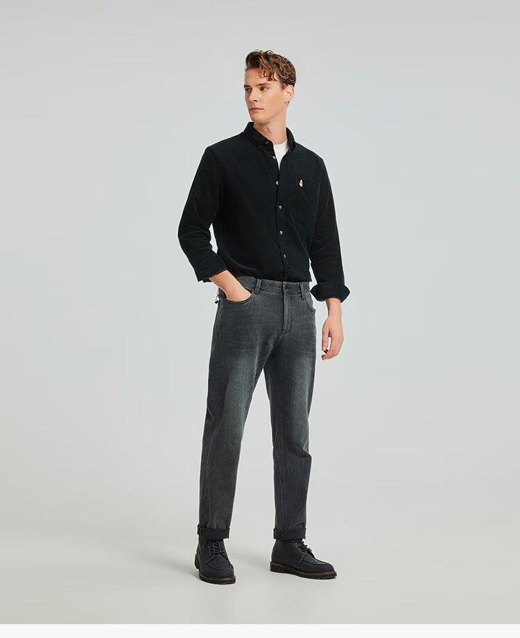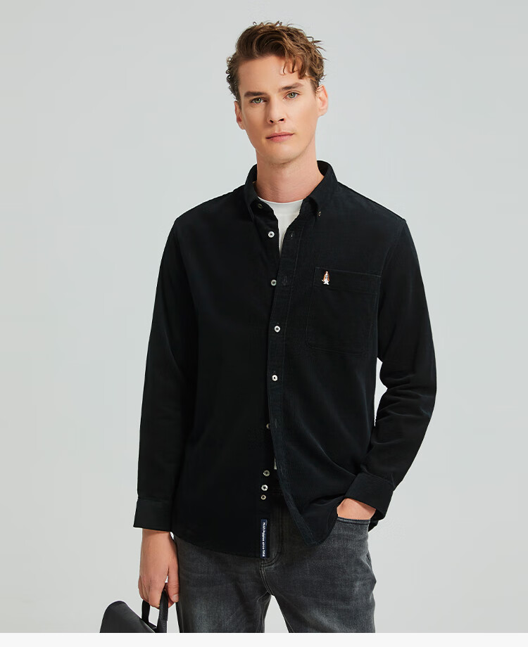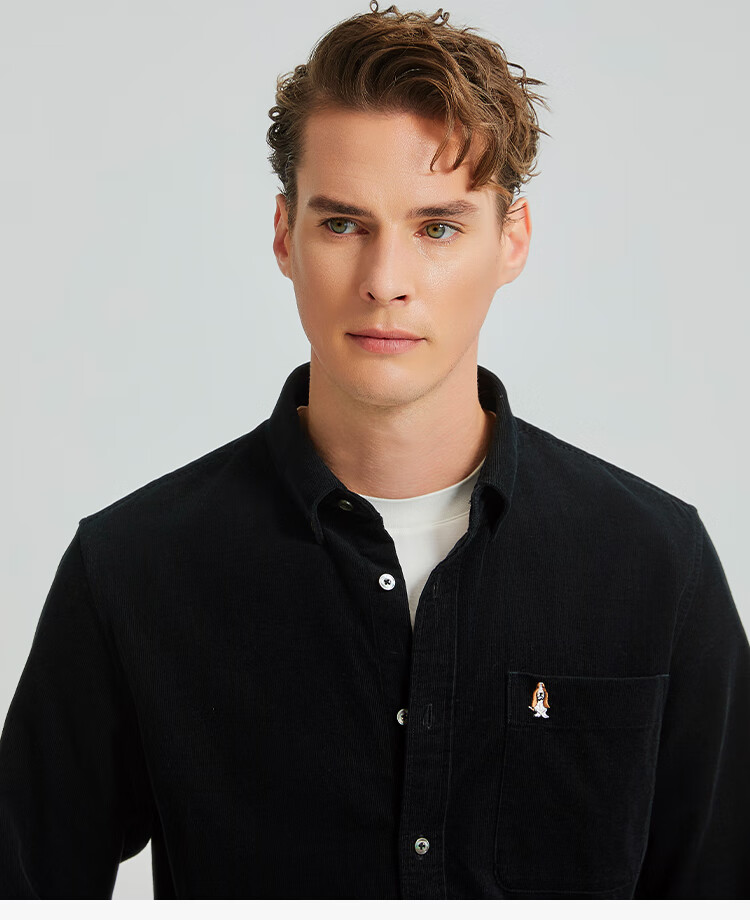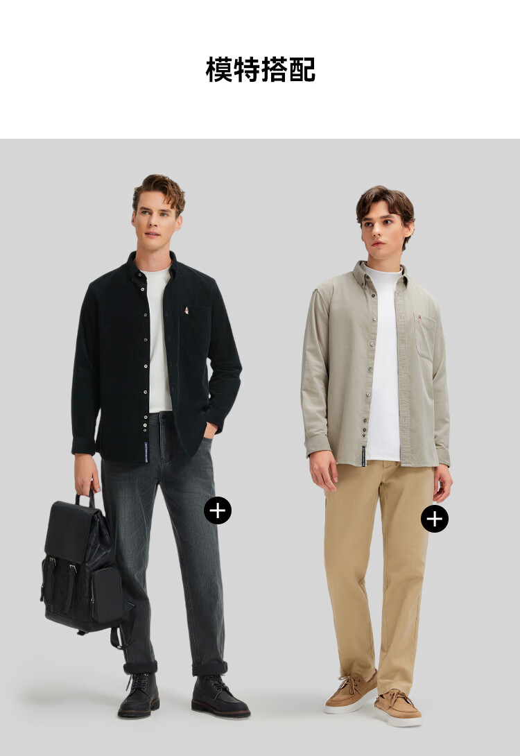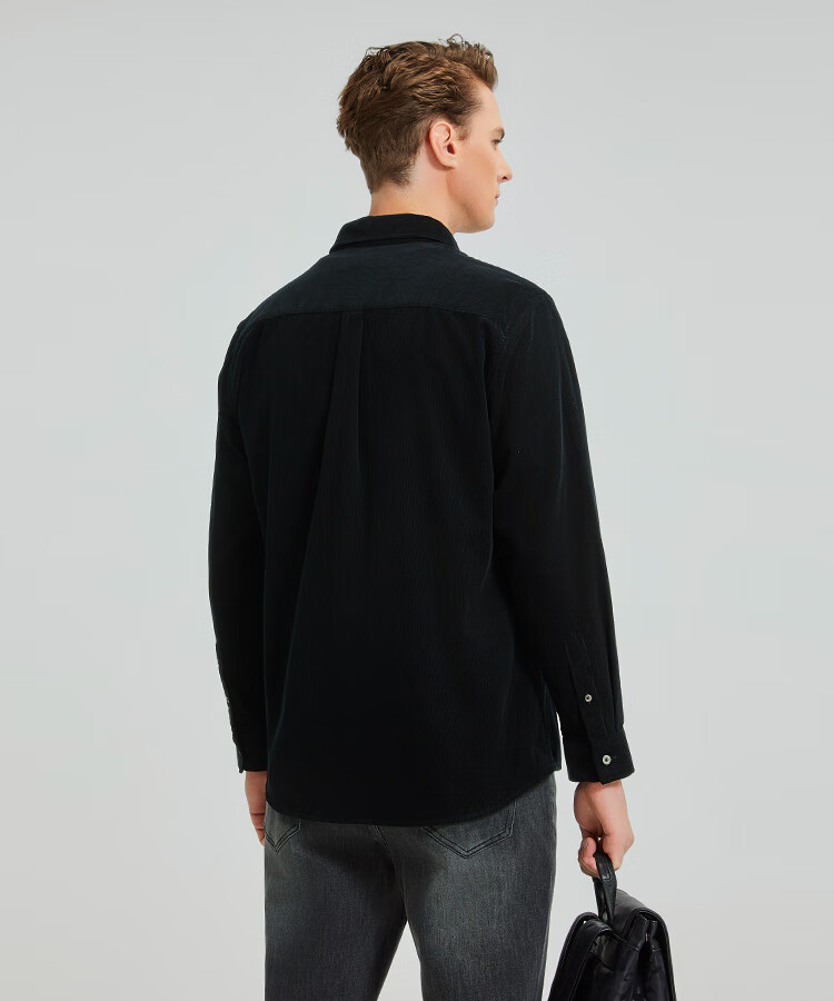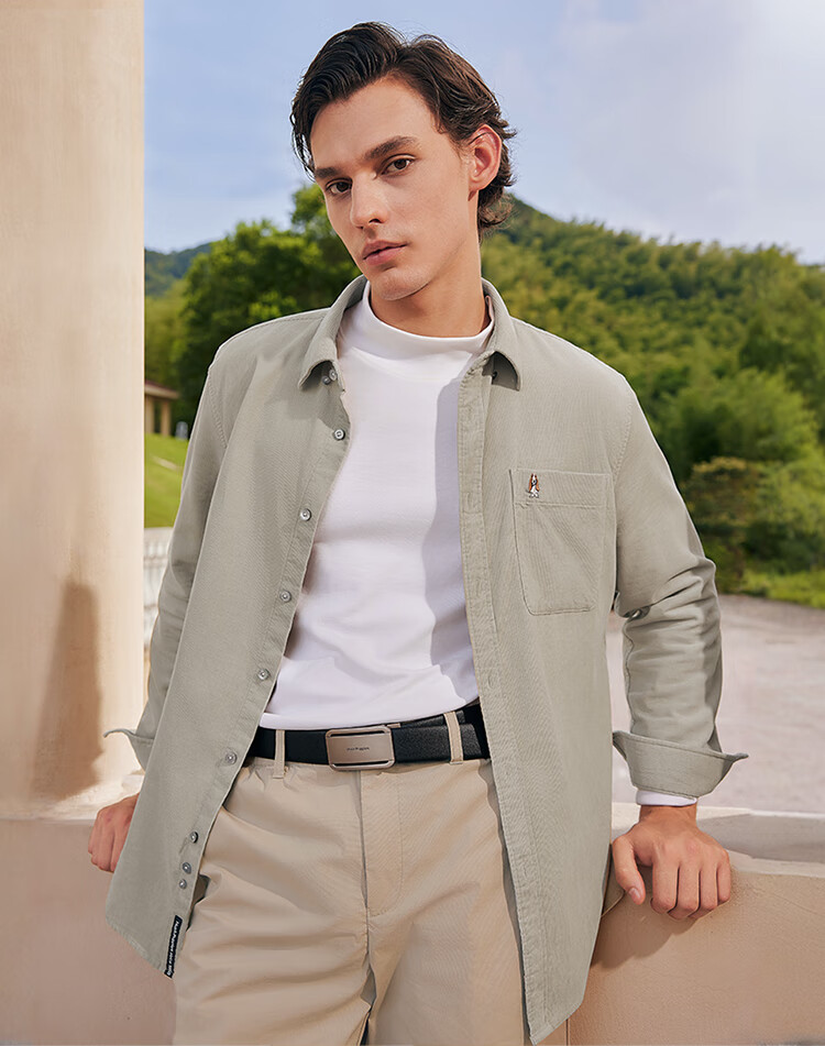 暇步士(Hush Puppies)【柔软耐磨】男装秋季面料厚实复古细条灯芯绒衬衫 苏叶绿 L