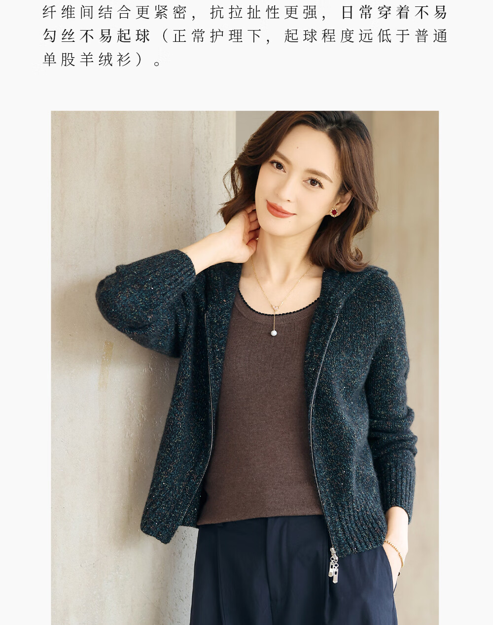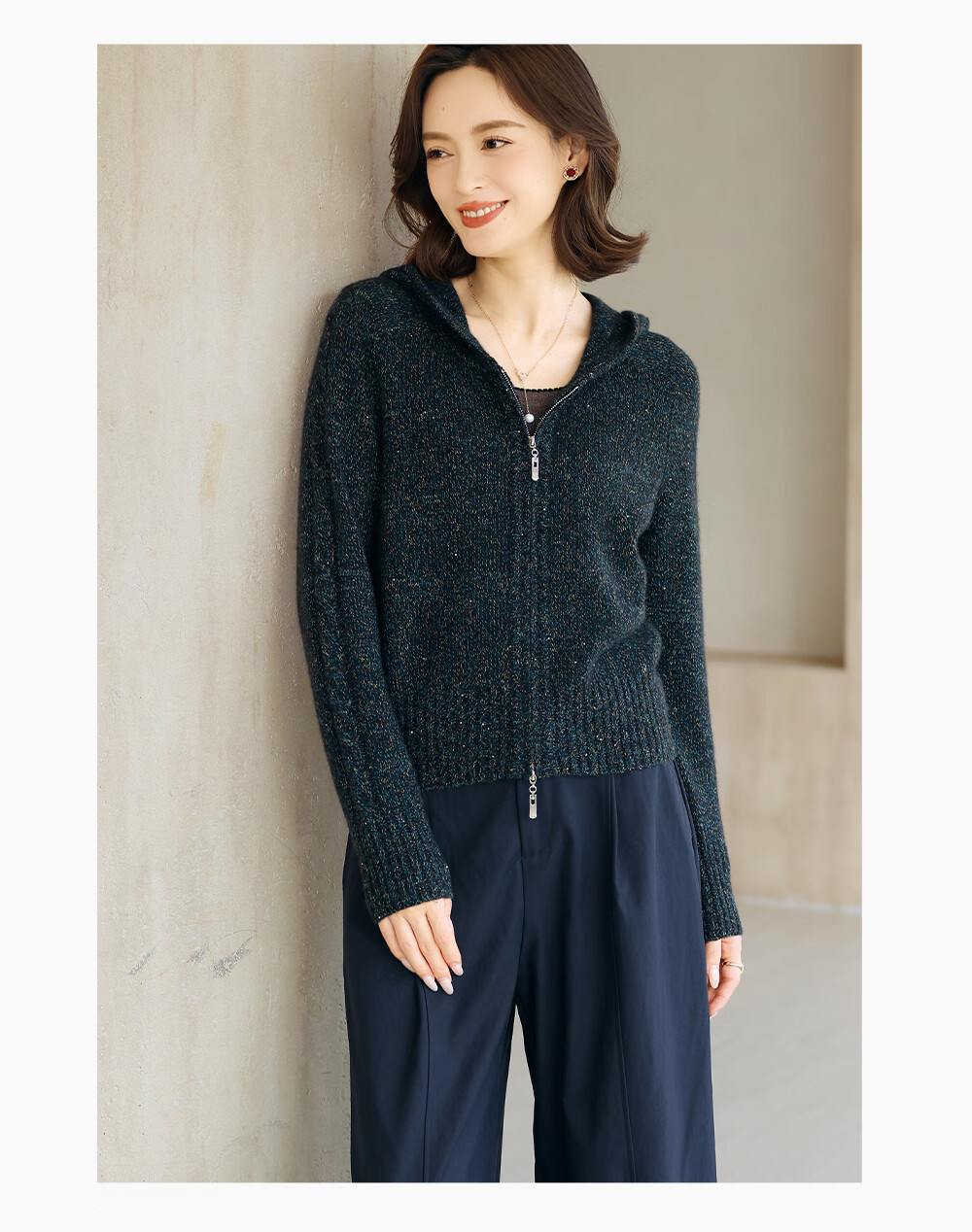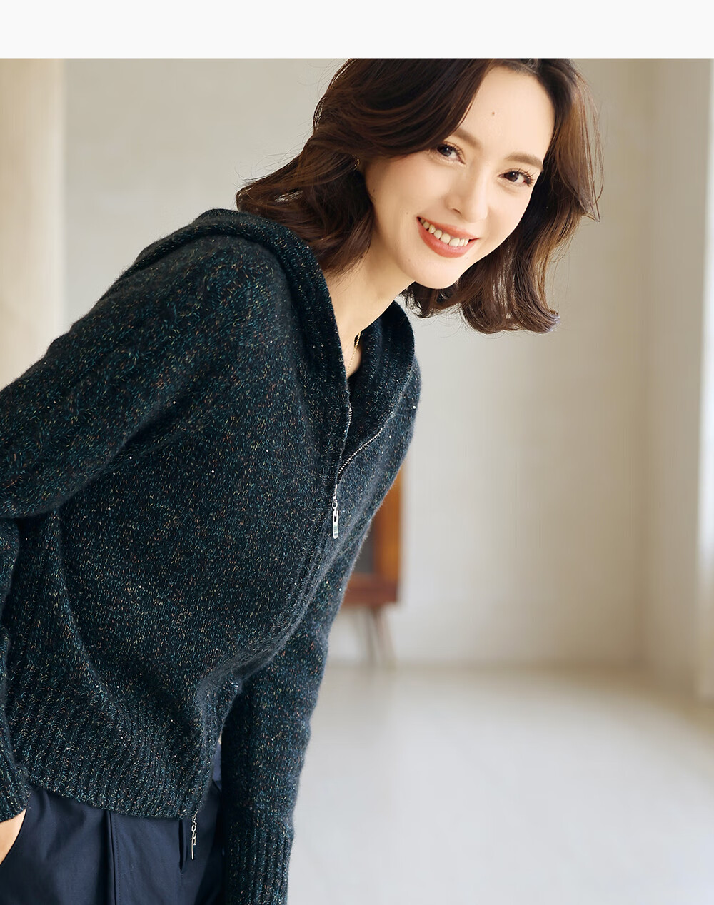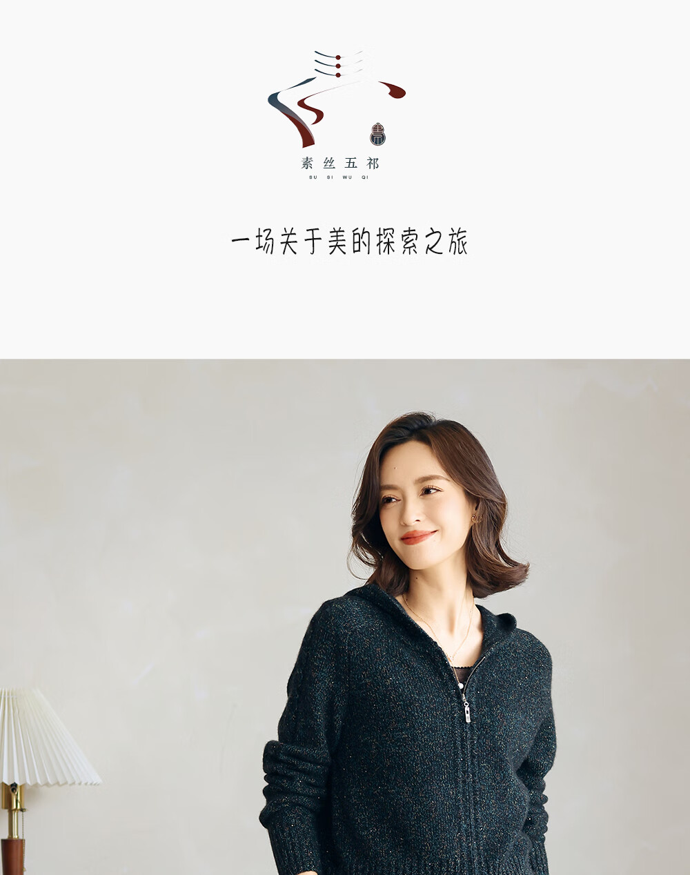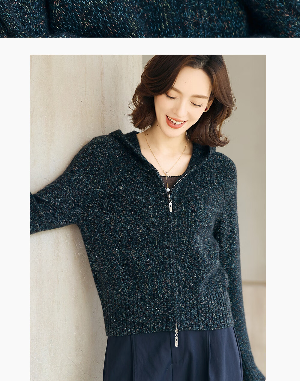素丝五祁(SUSIWUQI)2025秋冬花纱纯山羊绒拉链衫 时尚外搭连帽羊绒衫短外套 SY5763 Y5506幻彩黑 XL