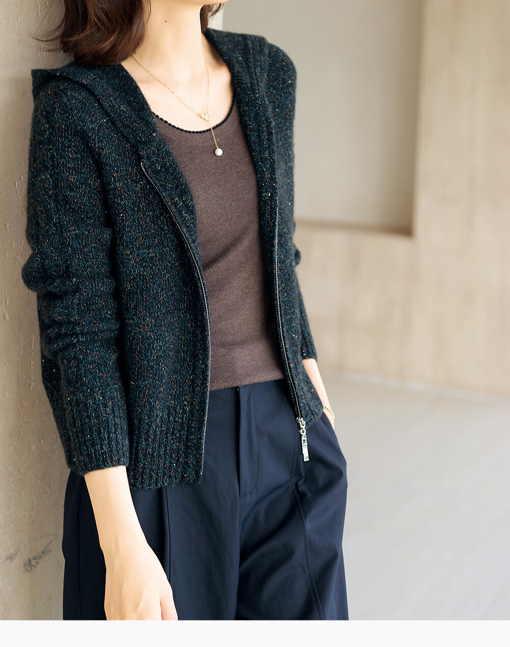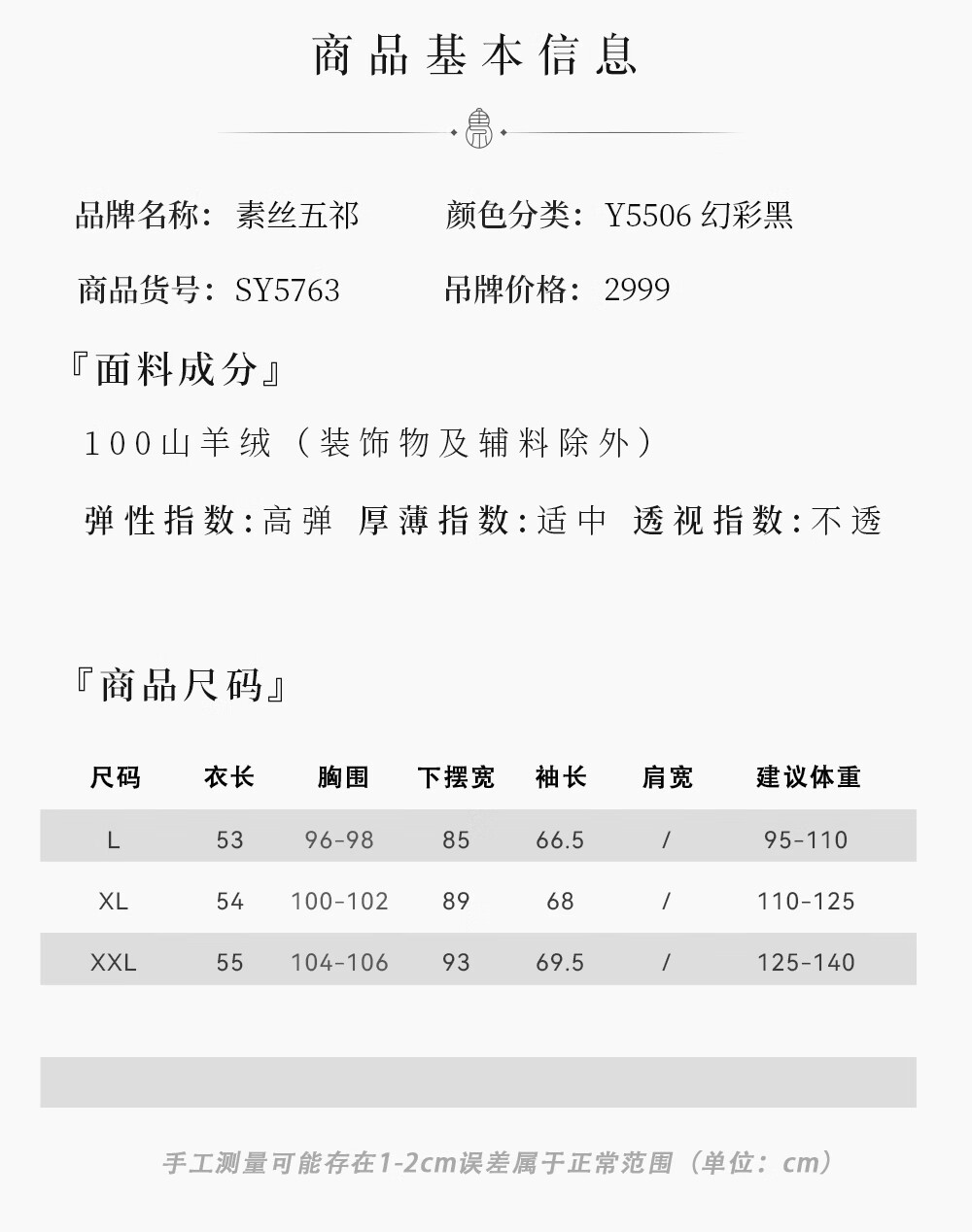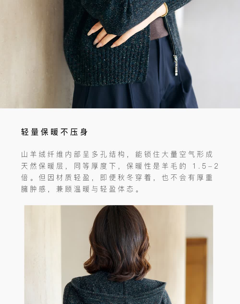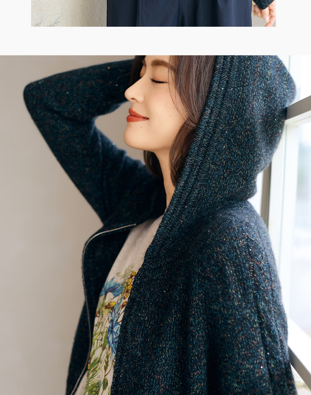 素丝五祁(SUSIWUQI)2025秋冬花纱纯山羊绒拉链衫 时尚外搭连帽羊绒衫短外套 SY5763 Y5506幻彩黑 XL