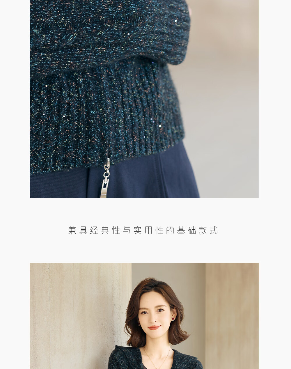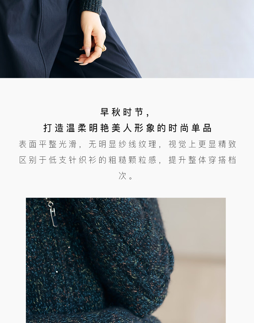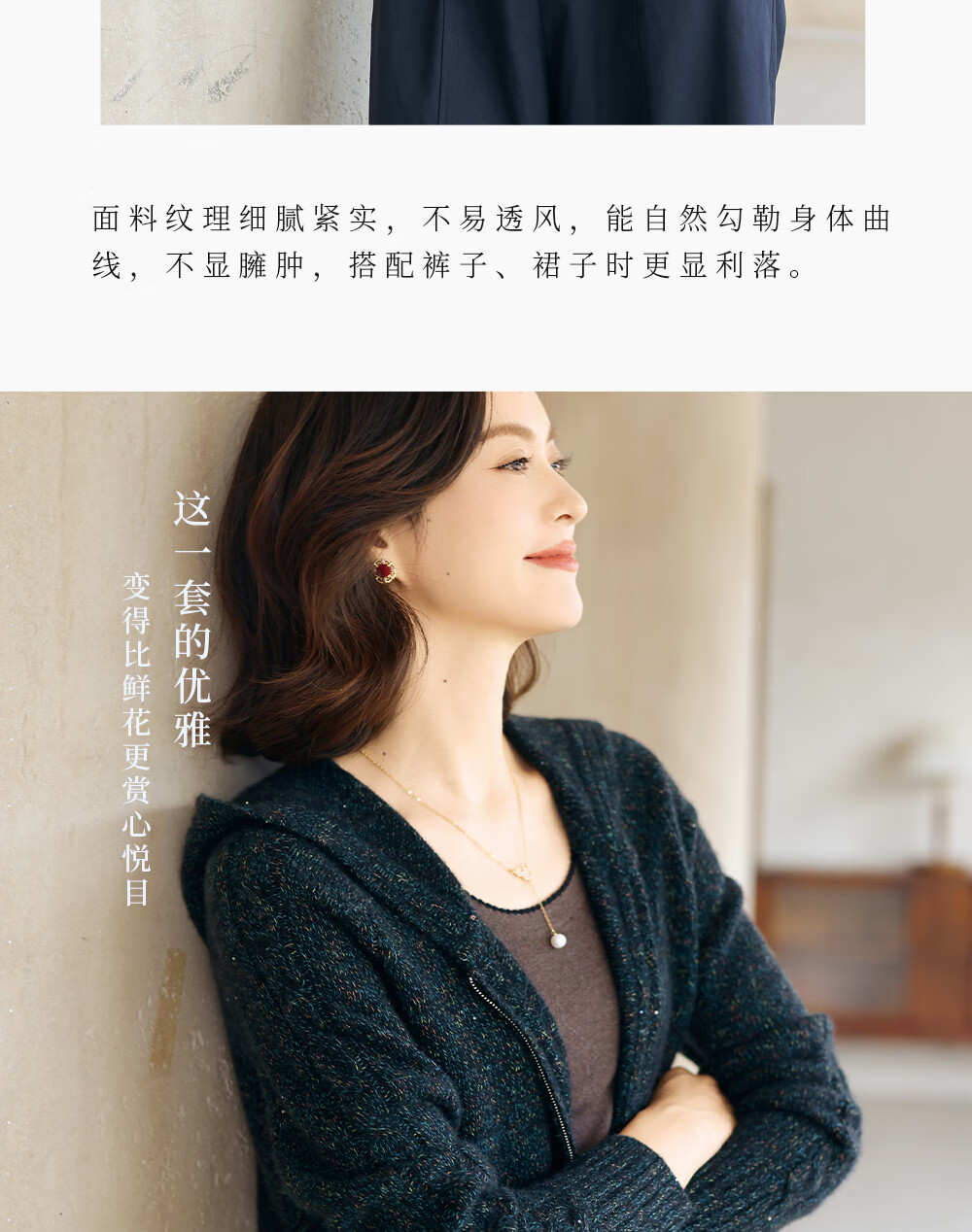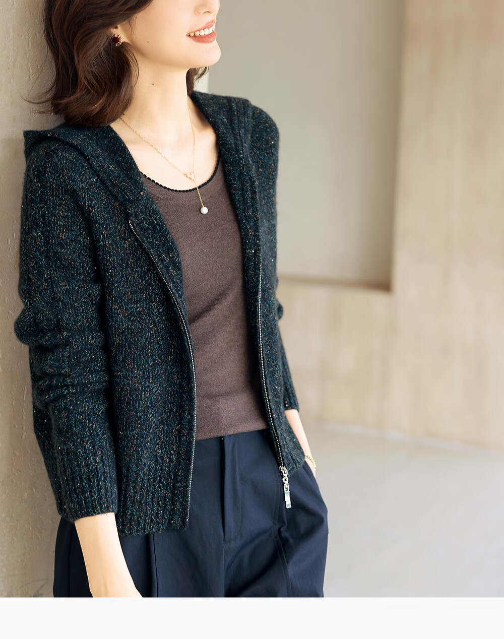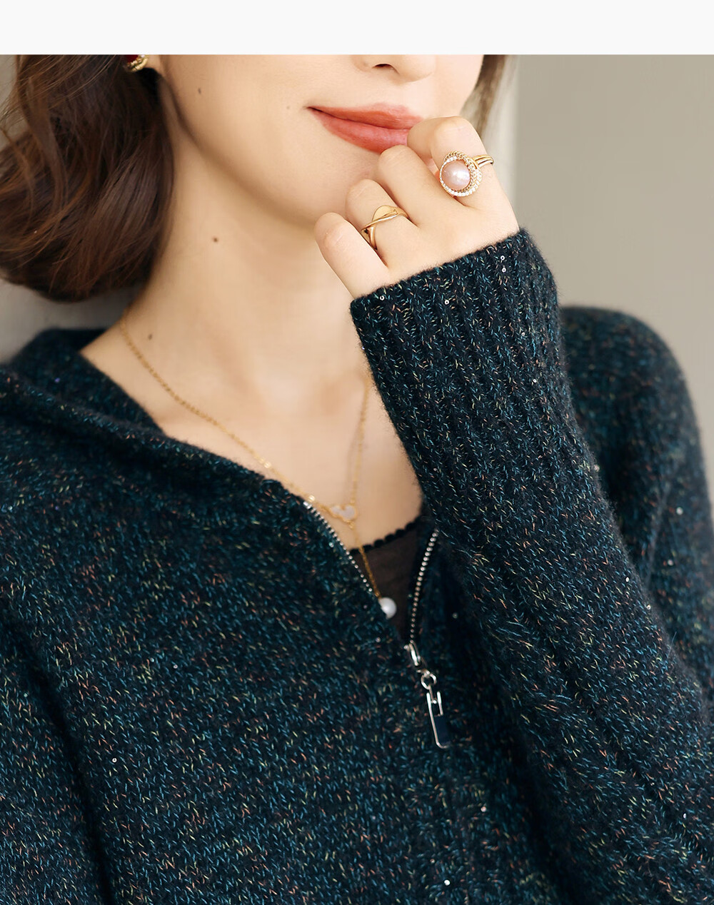素丝五祁(SUSIWUQI)2025秋冬花纱纯山羊绒拉链衫 时尚外搭连帽羊绒衫短外套 SY5763 Y5506幻彩黑 XL