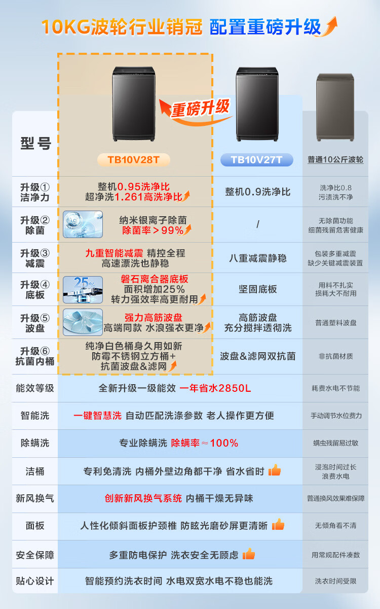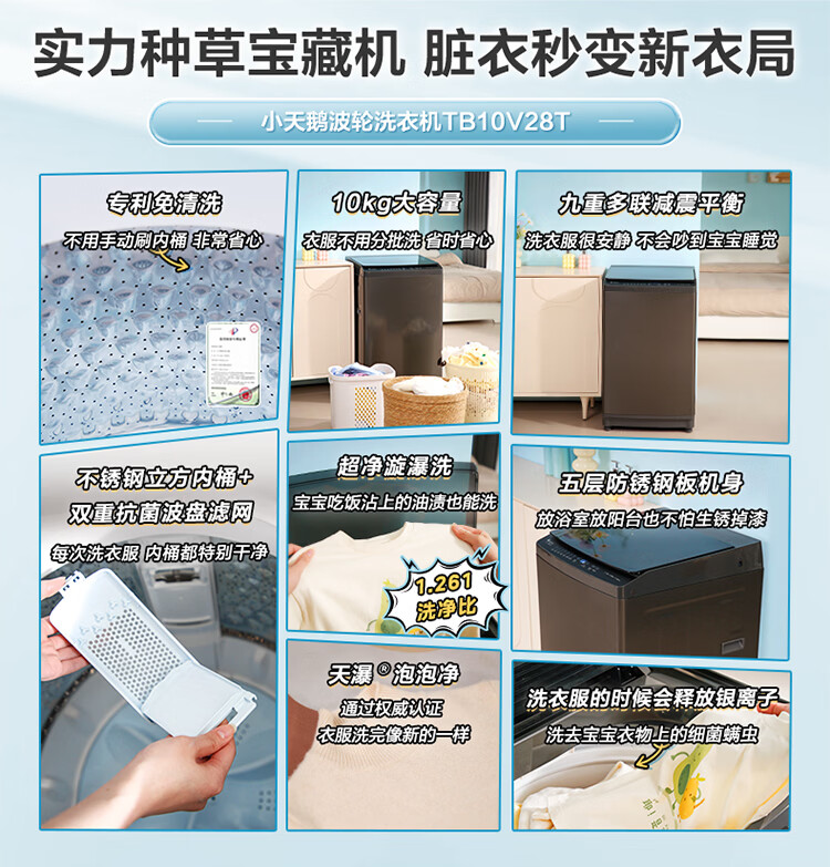 小天鹅(LittleSwan)波轮洗衣机小型全自动家用 10KG TB10V28T 以旧换新 京东自营 一级能效 宿舍租房神器