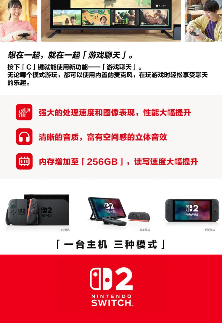 Nintendo Switch任天堂Switch2港版游戏机 switch二代便携游戏掌机 HDR屏幕电视游戏主机【单机 标准版】不含游戏