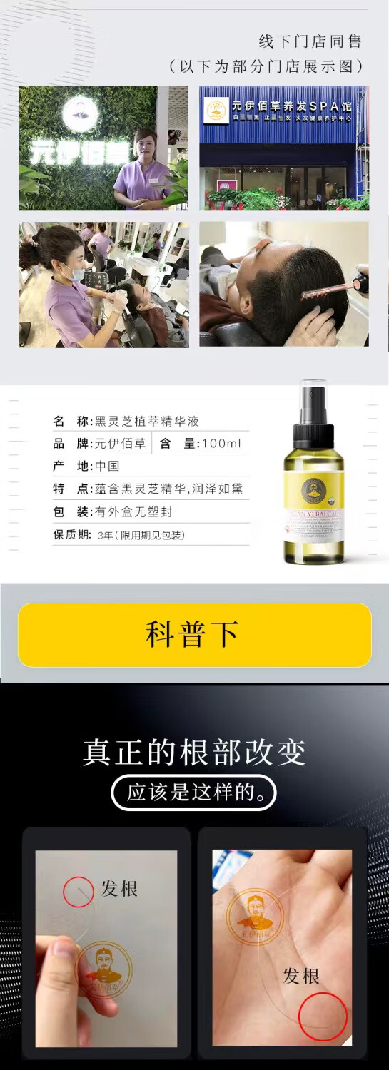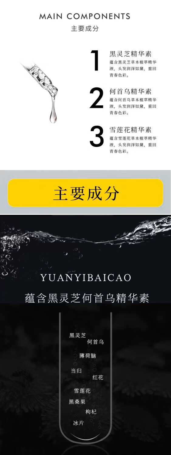 元伊佰草头皮护理何首乌养发白发治变转黑发乌发液营养实体店同款黑发精华 1瓶乌发液100ML【试用不推荐】 高配加强门店款【黑发根】