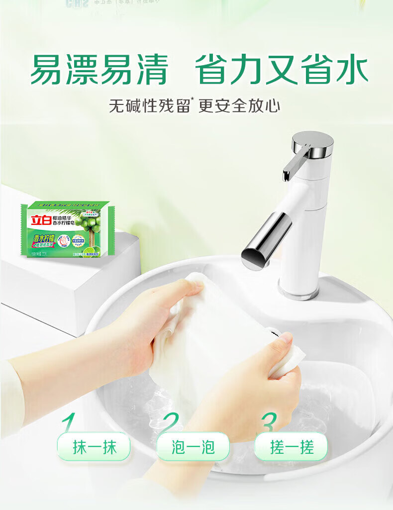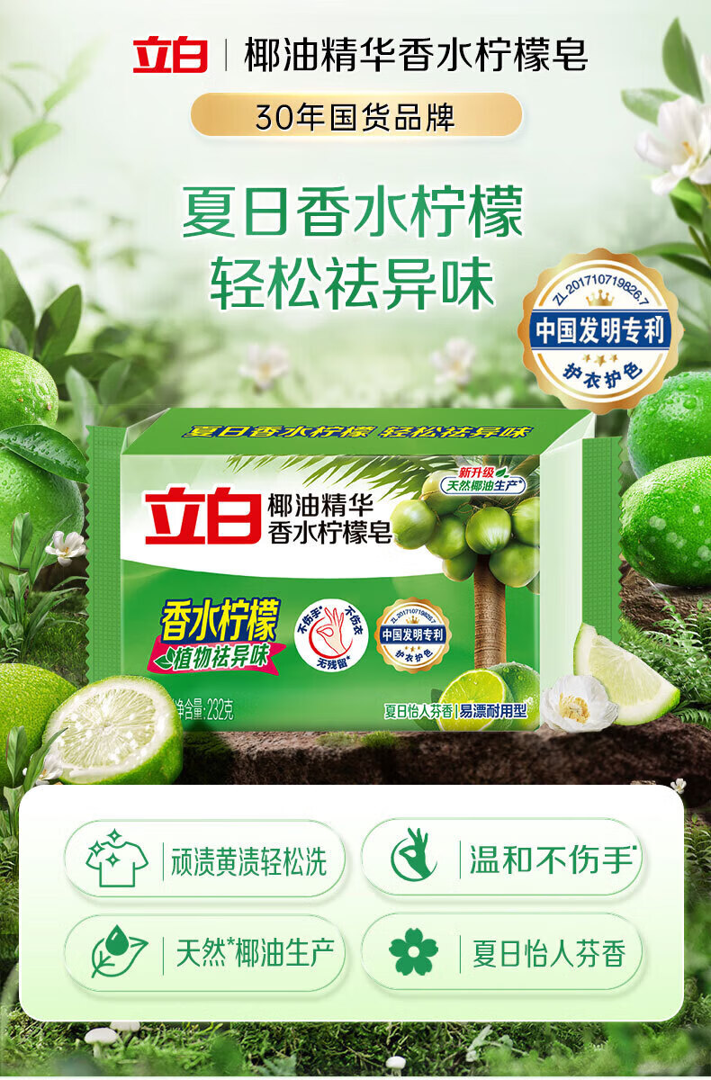 立白椰油精华洗衣皂植物除菌大块温和护手内衣皂装洁净祛味易漂耐用 【热销装】香水柠檬洗衣皂232g