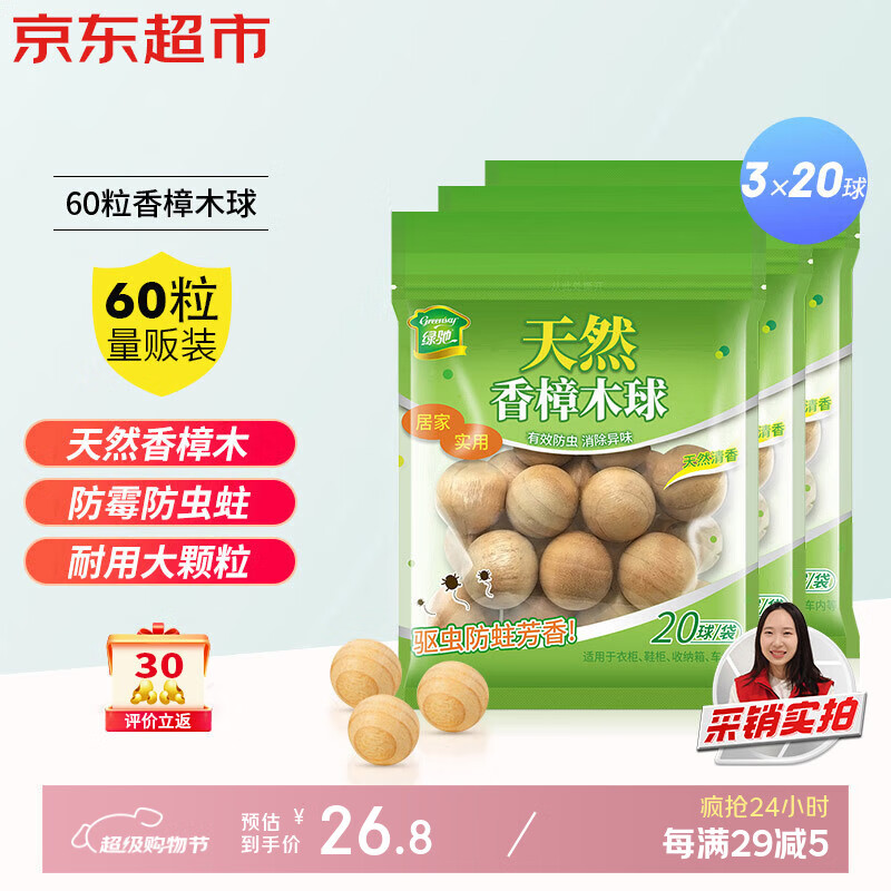 绿驰天然香樟木球鞋衣柜子驱蟑螂防虫蛀去霉潮湿剂卫生条除臭味樟脑丸 【防虫蛀】香樟木球60球