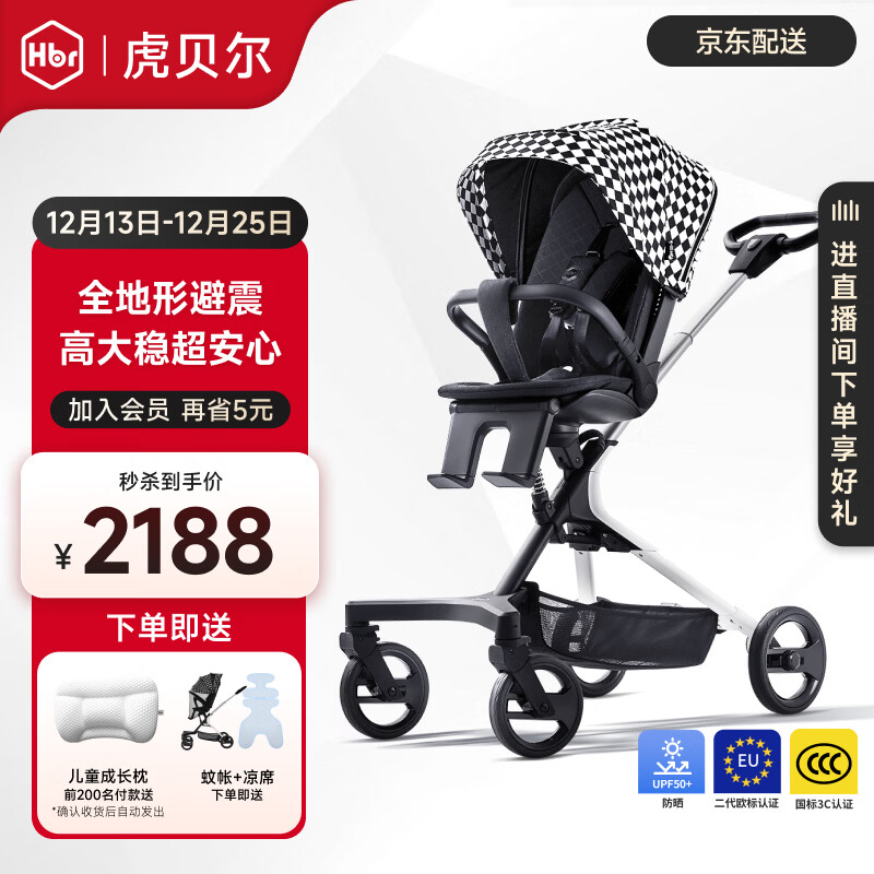 虎贝尔遛娃神器0~6岁便携可折叠双向高景观可坐可躺婴儿车溜娃神器 城市漫步遛娃车-黑白格