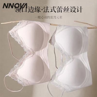 【NNOVA】抹胸防垂法式蕾丝无痕内衣女小胸聚拢收副乳薄款背心文胸