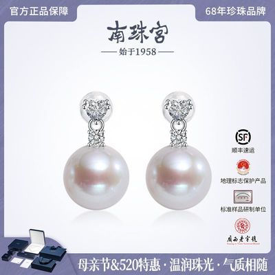 南珠宫[心意]淡水珍珠耳环925银针近圆优雅百搭母亲节礼物礼盒