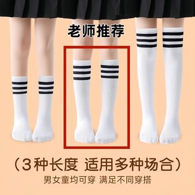 儿童中筒袜夏季薄款长筒足球袜子男女童小学生运动演出条纹三杠袜