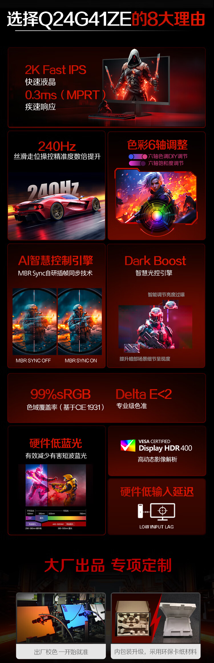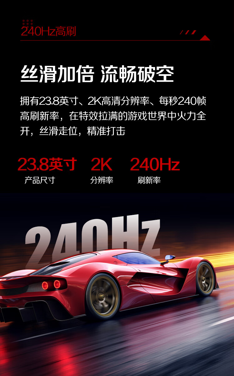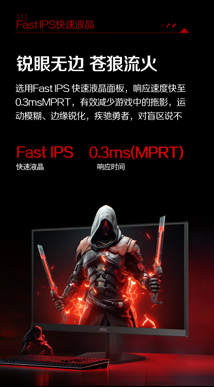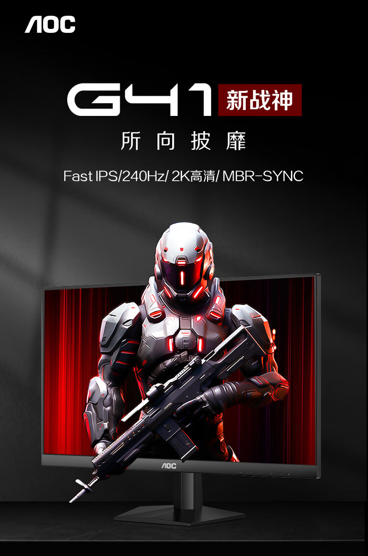 AOC 23.8英寸2K 260Hz FastIPS 快速液晶1ms 硬件低蓝光 三角洲游戏电竞电脑显示器 新战神Q24G41ZE