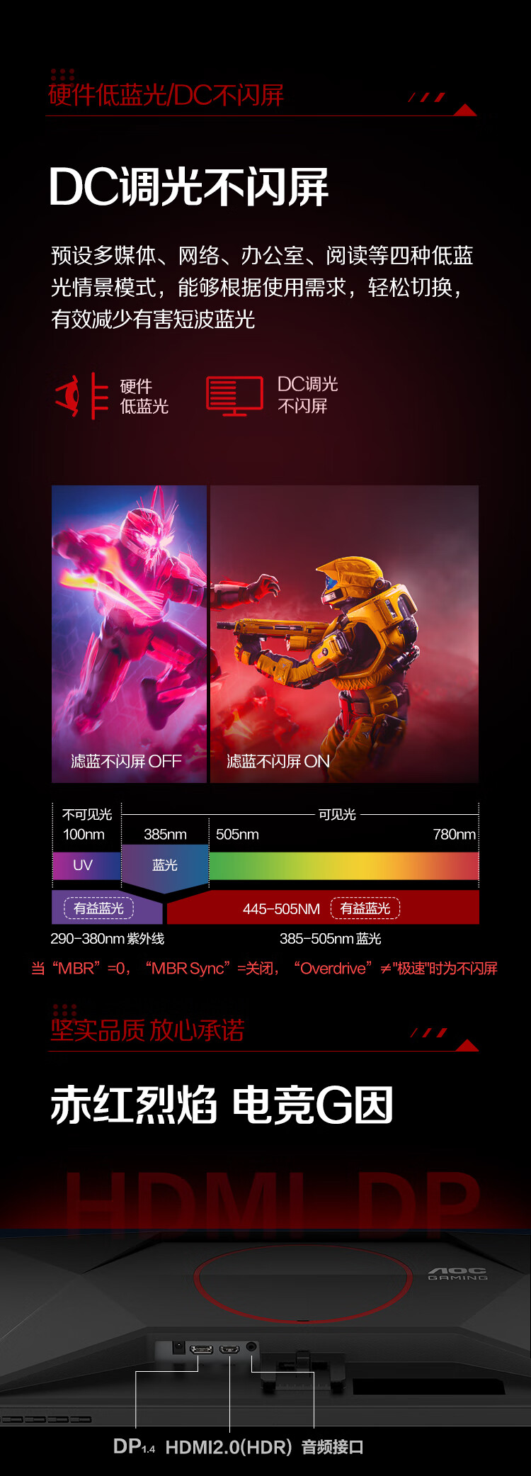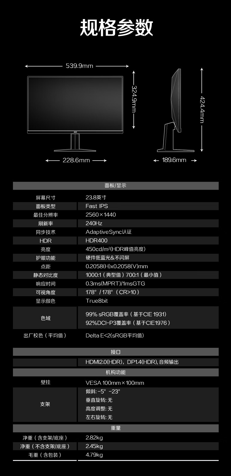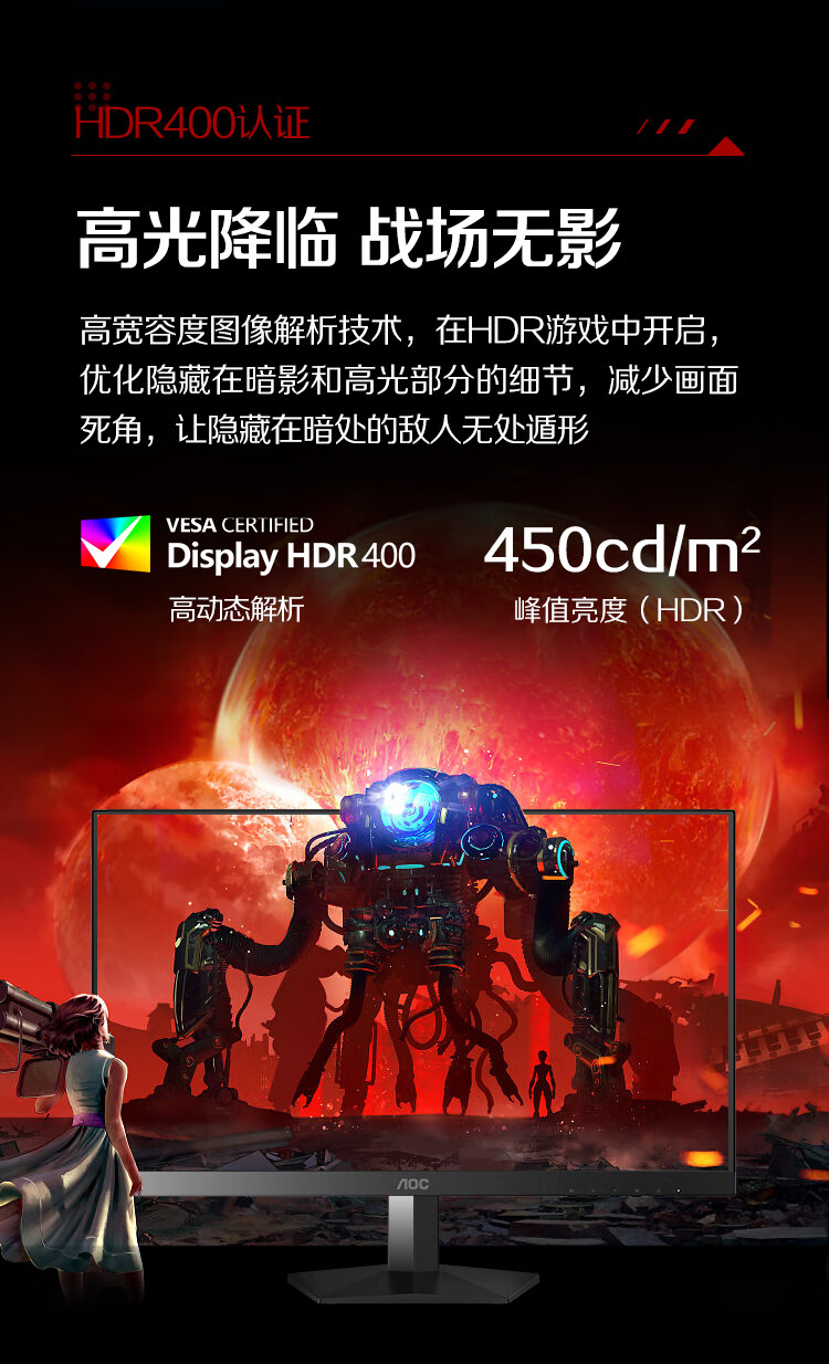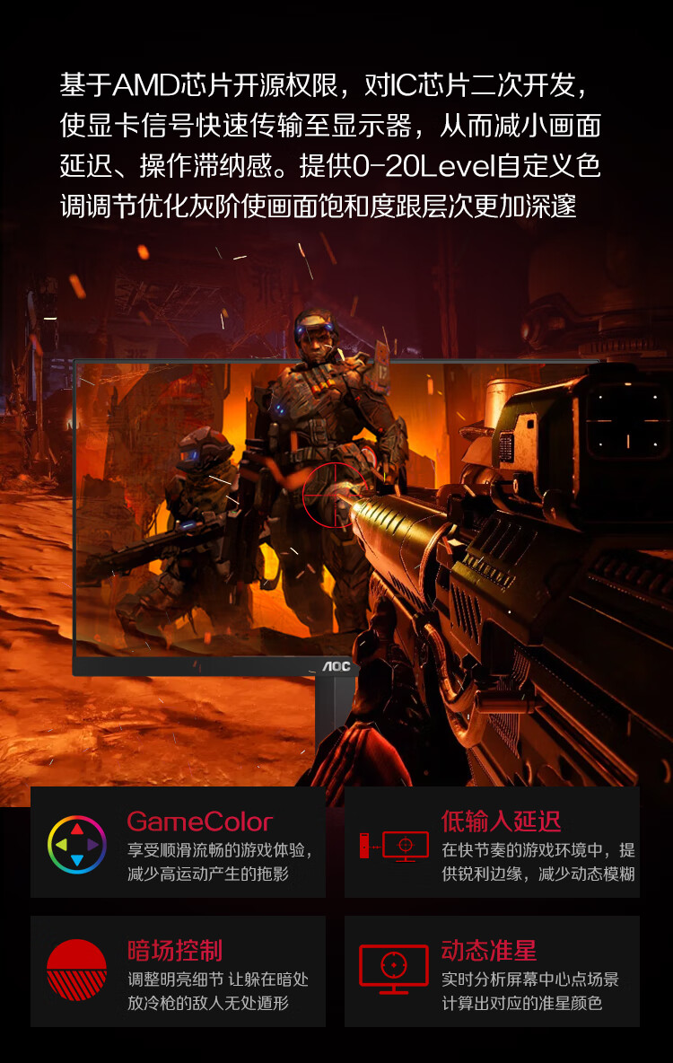 AOC 23.8英寸2K 260Hz FastIPS 快速液晶1ms 硬件低蓝光 三角洲游戏电竞电脑显示器 新战神Q24G41ZE