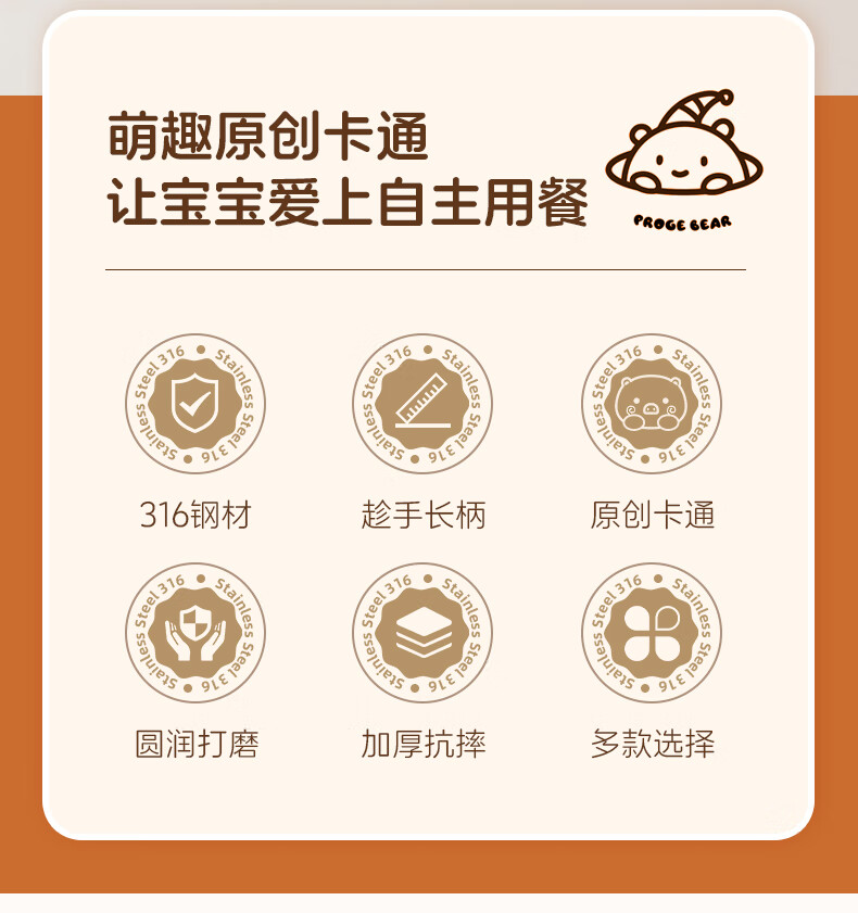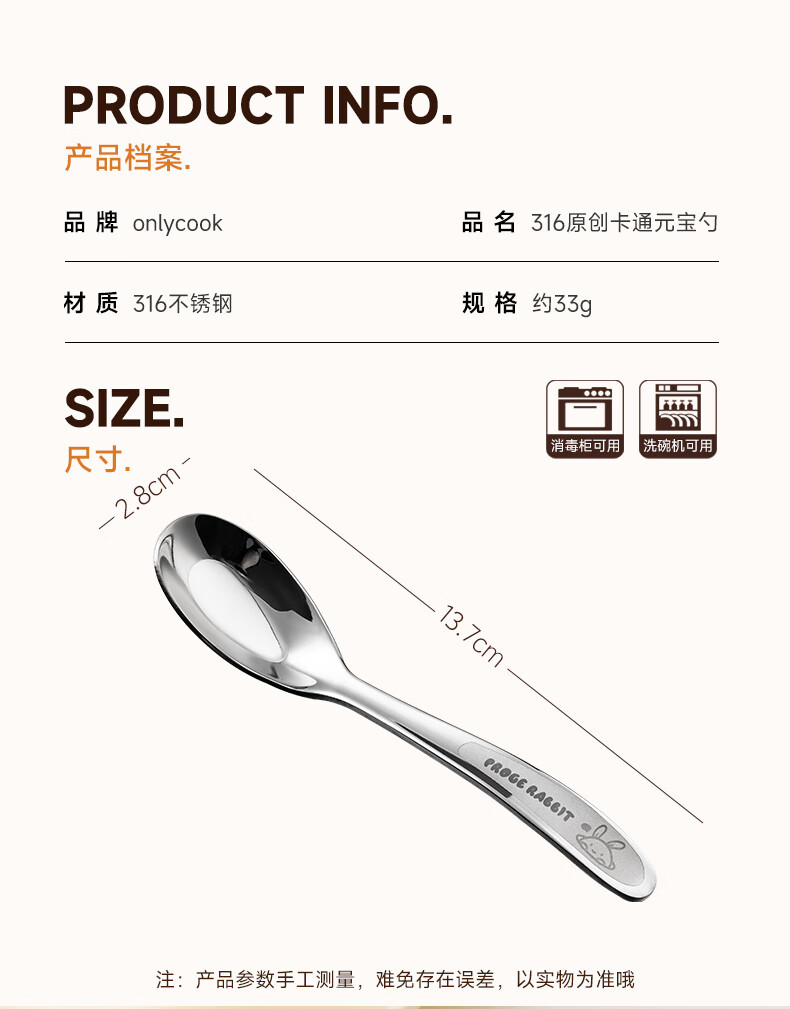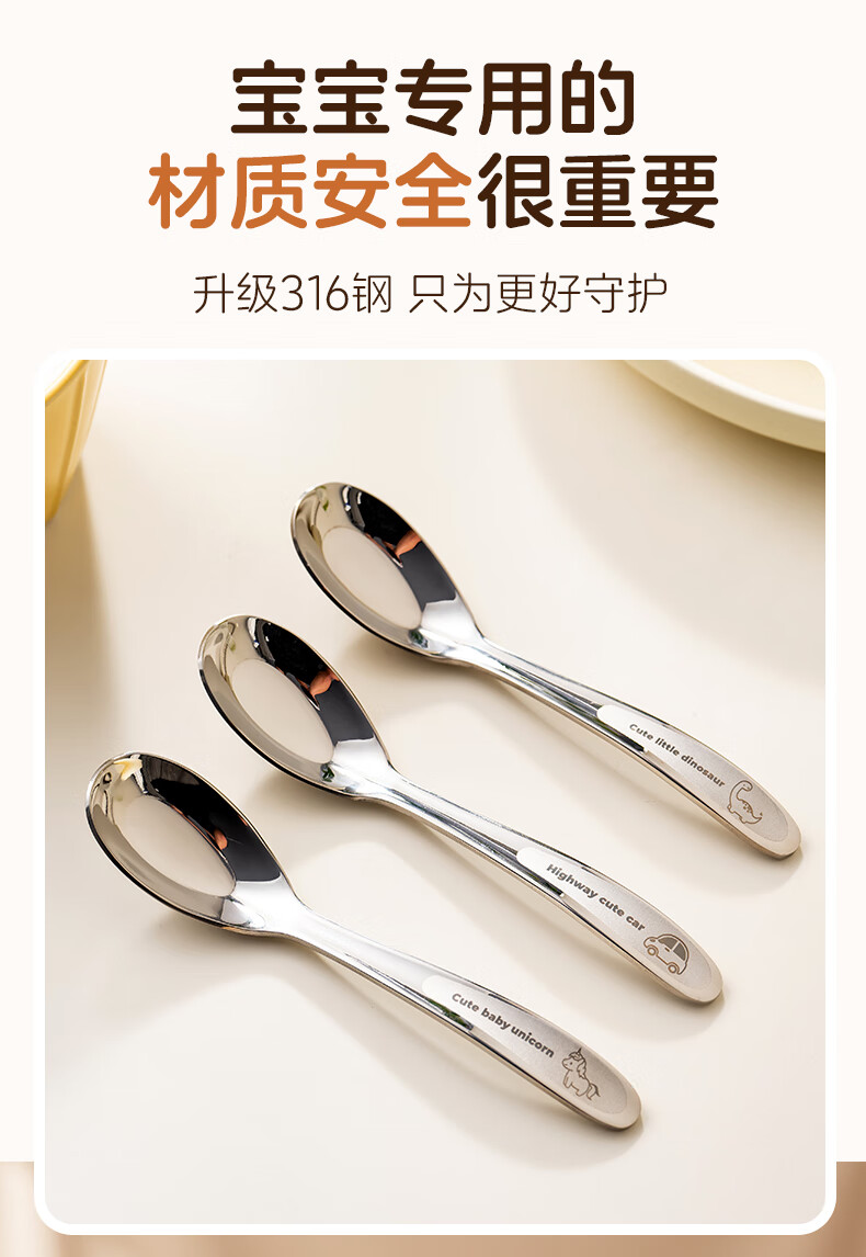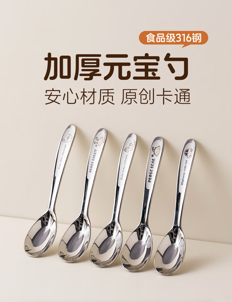 onlycook316不锈钢儿童勺子 辅食勺饭勺汤勺餐勺3-6岁儿童宝宝餐具