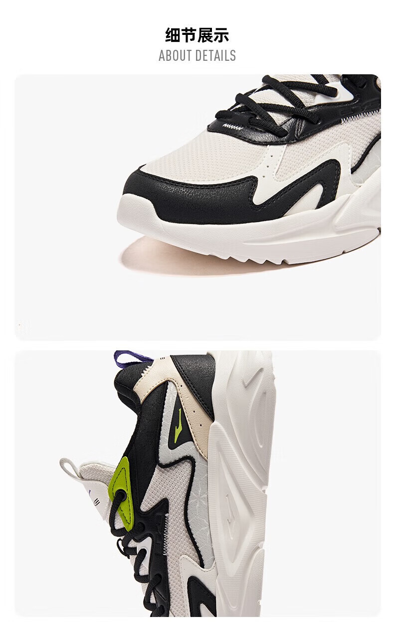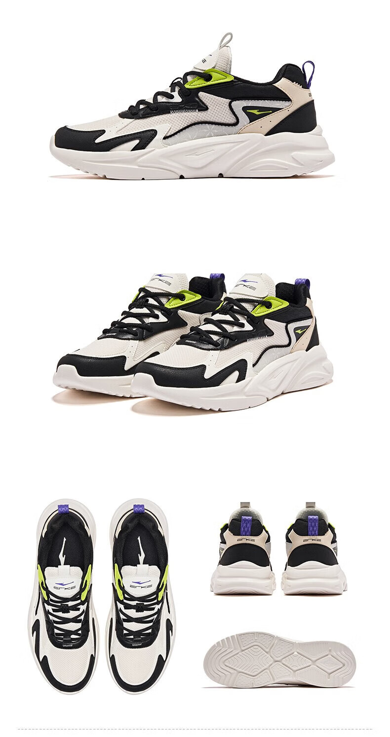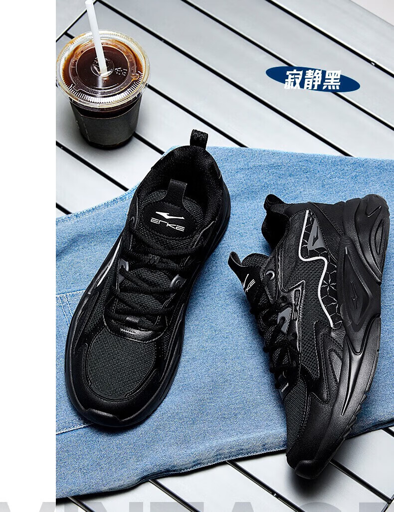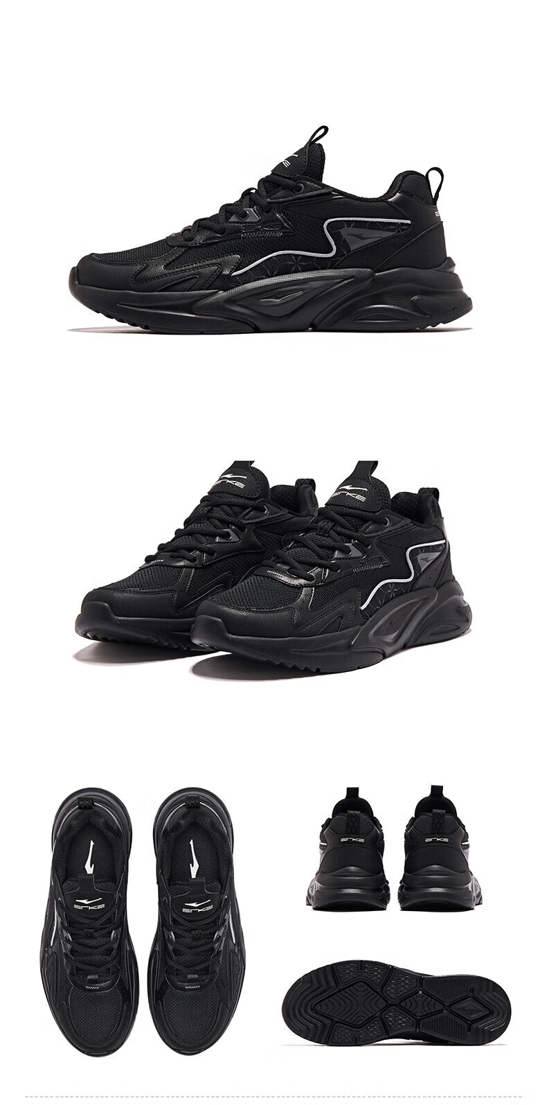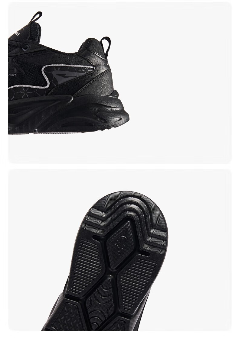 鸿星尔克休闲男鞋秋季舒适休闲鞋轻便复古老爹鞋防滑运动鞋子男川流 正黑/微晶白 44