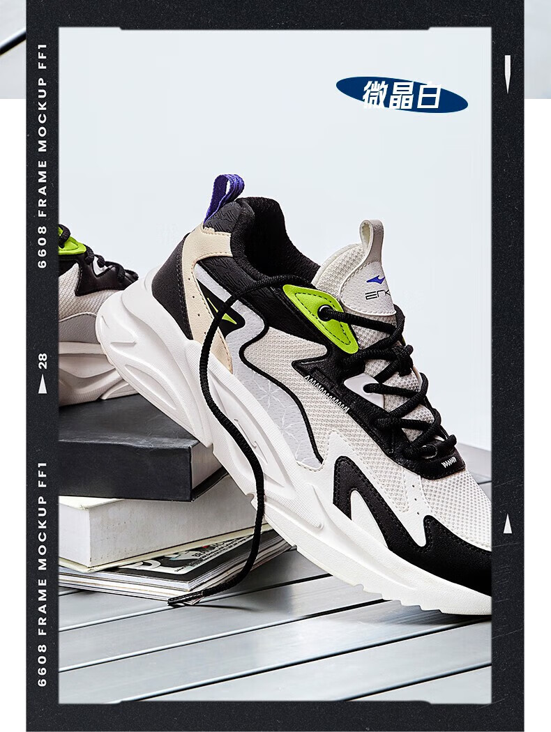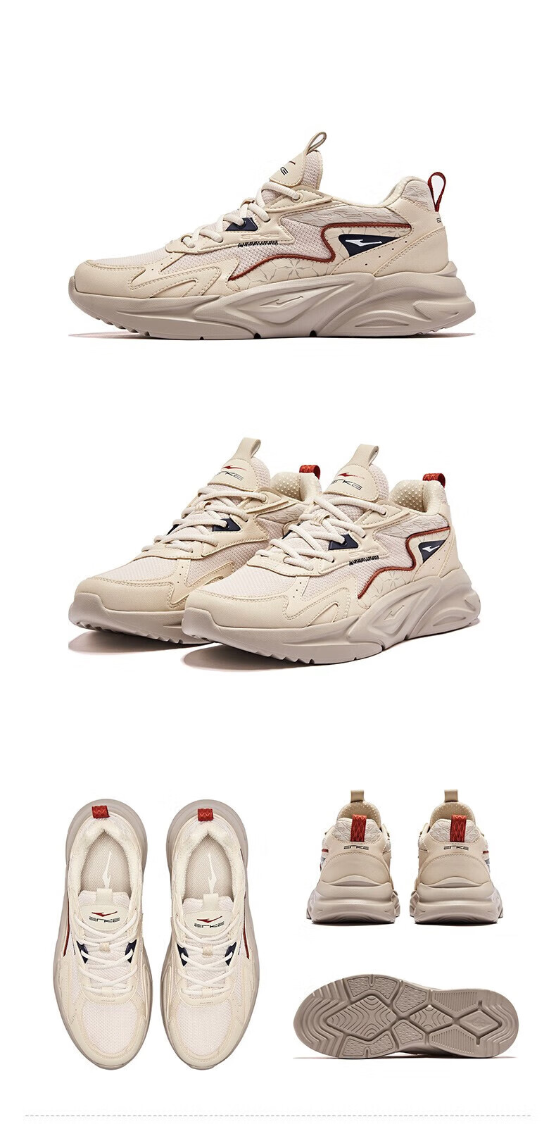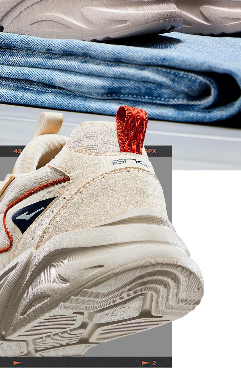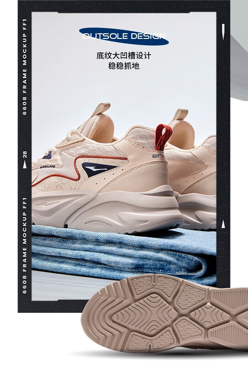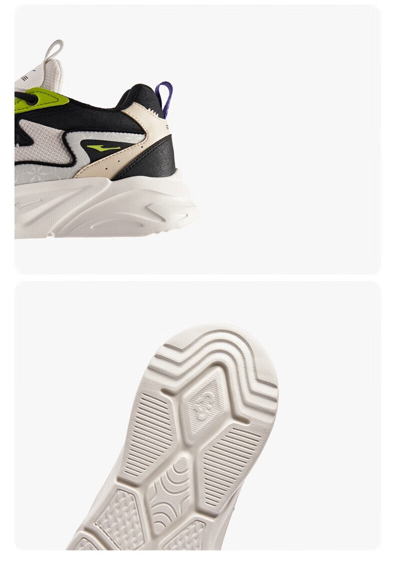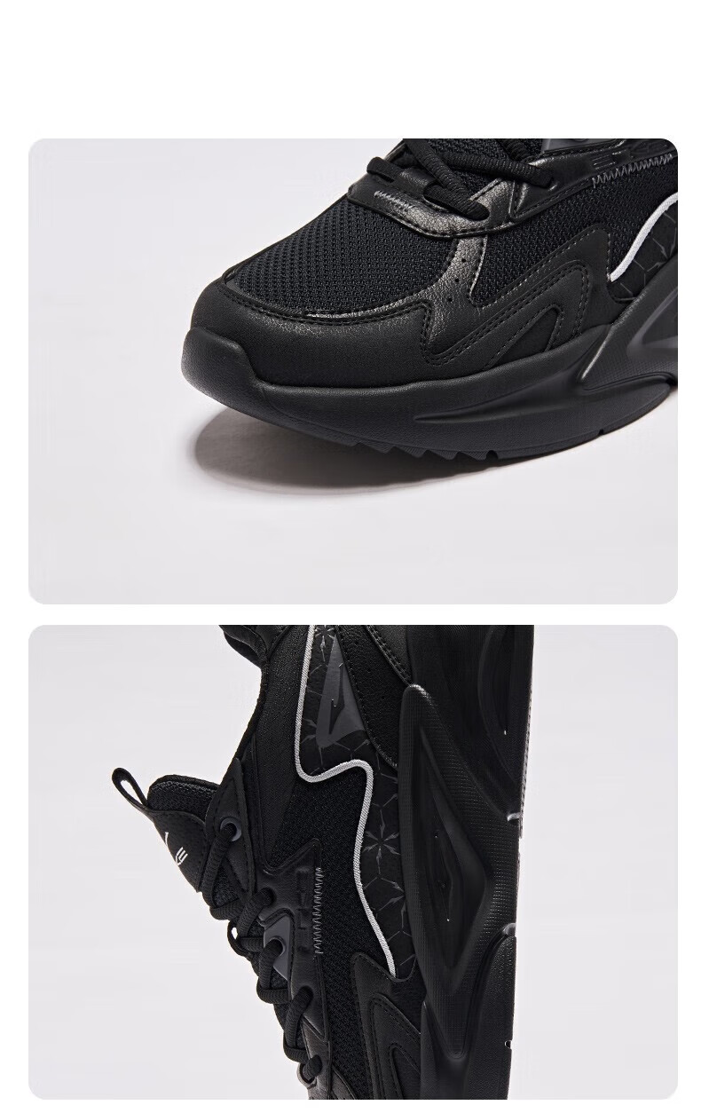 鸿星尔克休闲男鞋秋季舒适休闲鞋轻便复古老爹鞋防滑运动鞋子男川流 正黑/微晶白 44