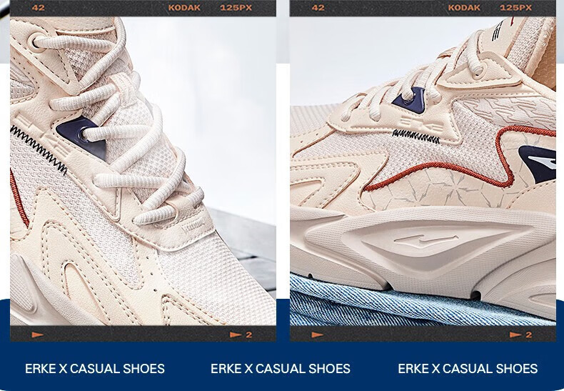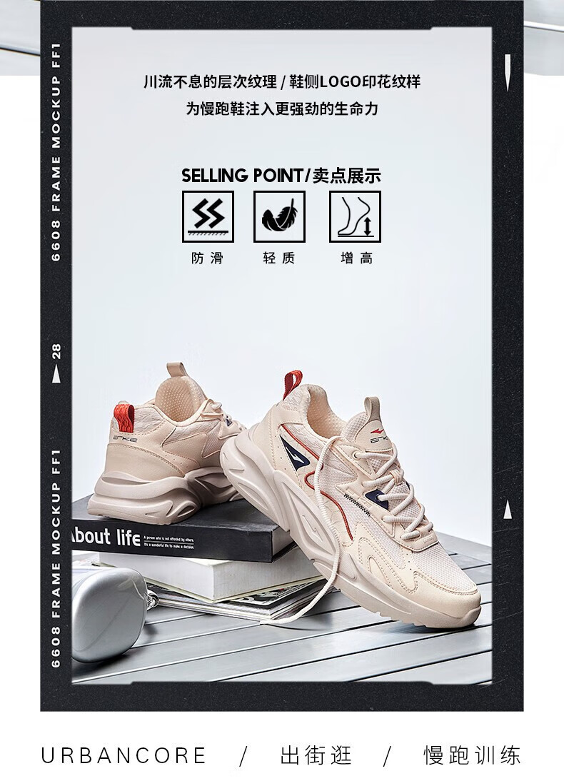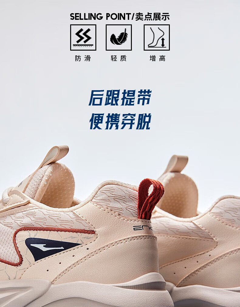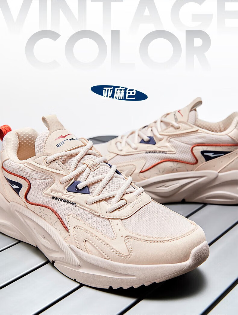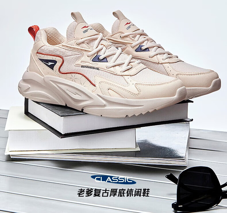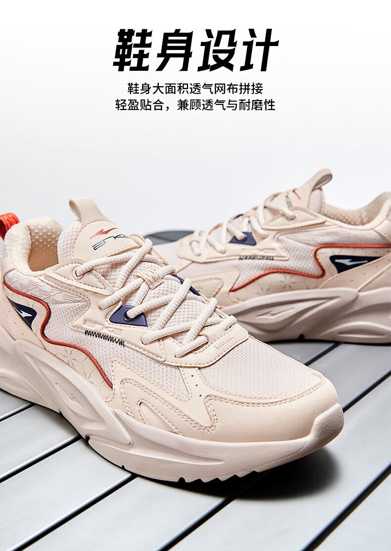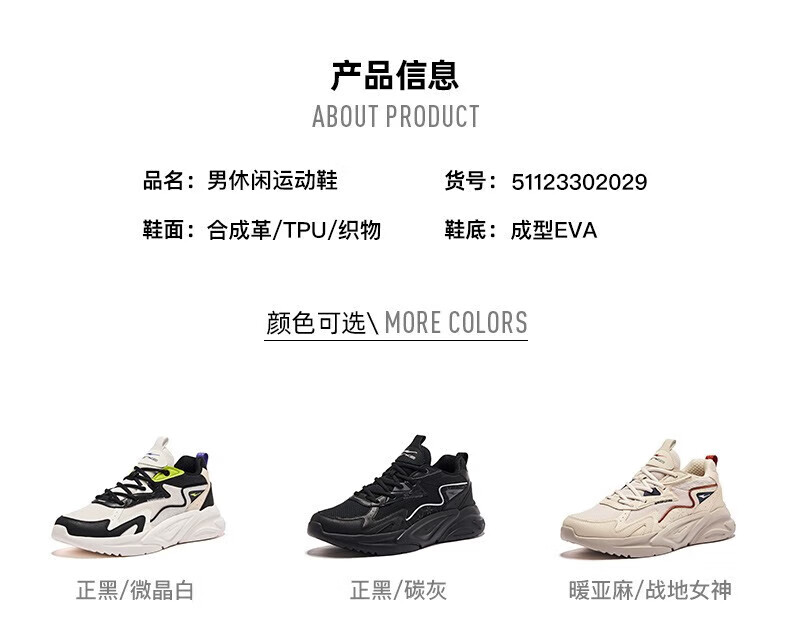 鸿星尔克休闲男鞋秋季舒适休闲鞋轻便复古老爹鞋防滑运动鞋子男川流 正黑/微晶白 44