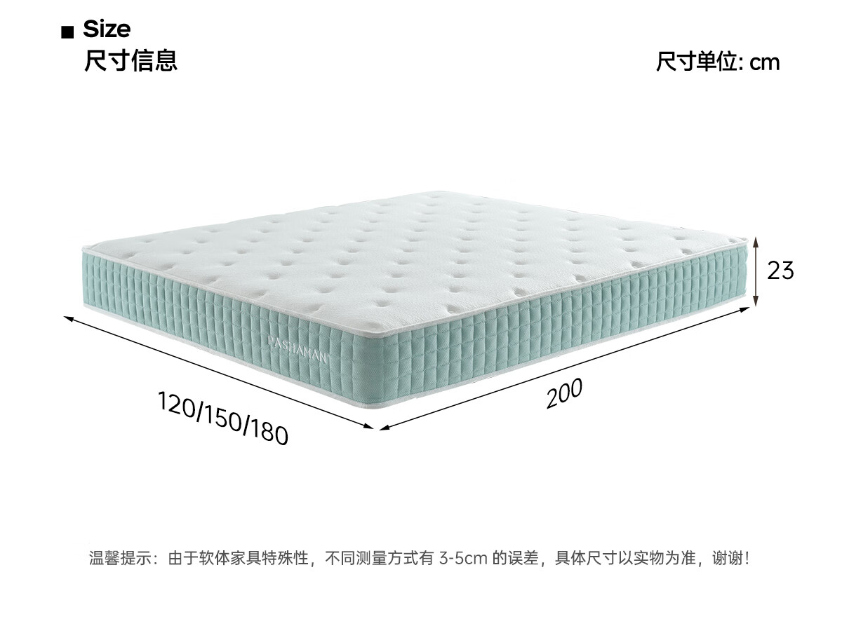 帕沙曼独立弹簧床垫家用护脊床垫20cm厚垫180x200席梦思Z0051 B款【偏硬丨23cm厚】0胶黄麻棕+独立袋装弹簧 1800*2000mm